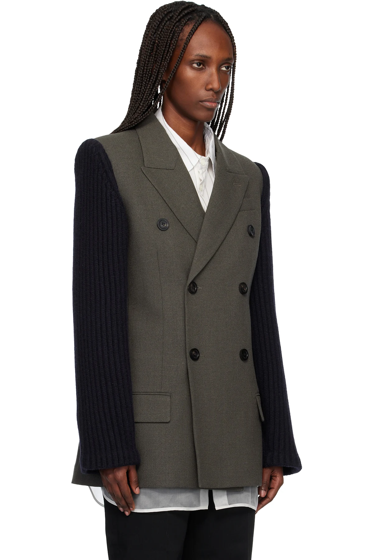 Jean Paul Gaultier Khaki & Navy 'The Bi-Material Suit' Blazer