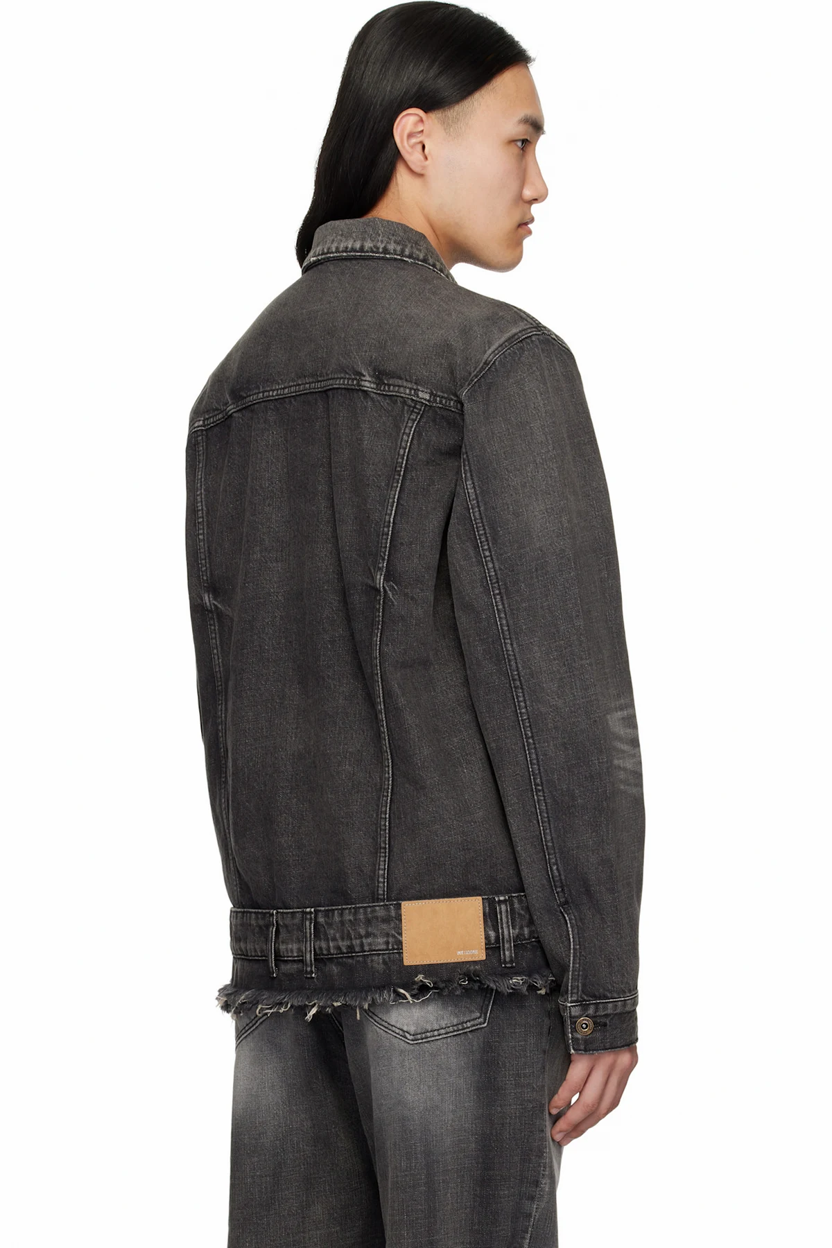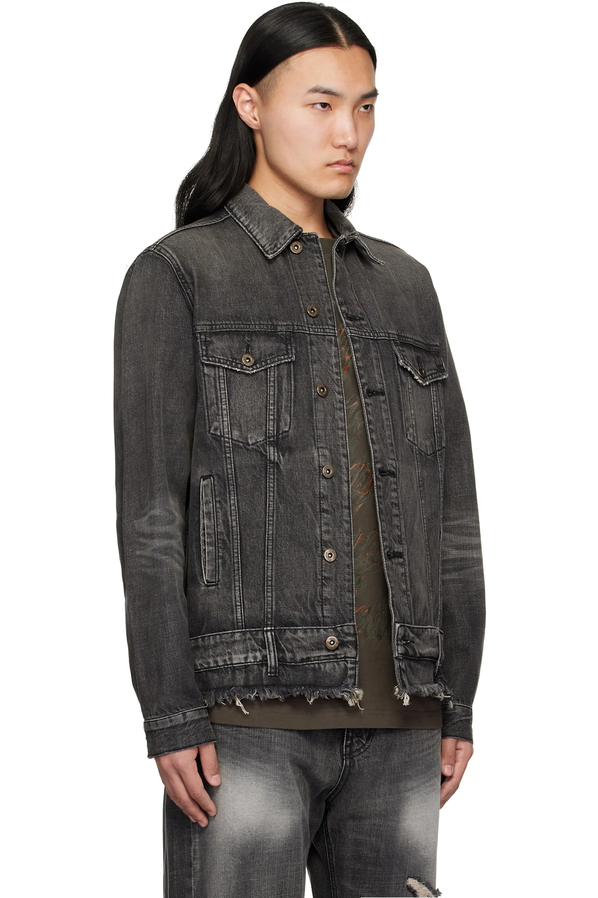 Non-stretch denim jacket. Fading and subtle distressing throughout.