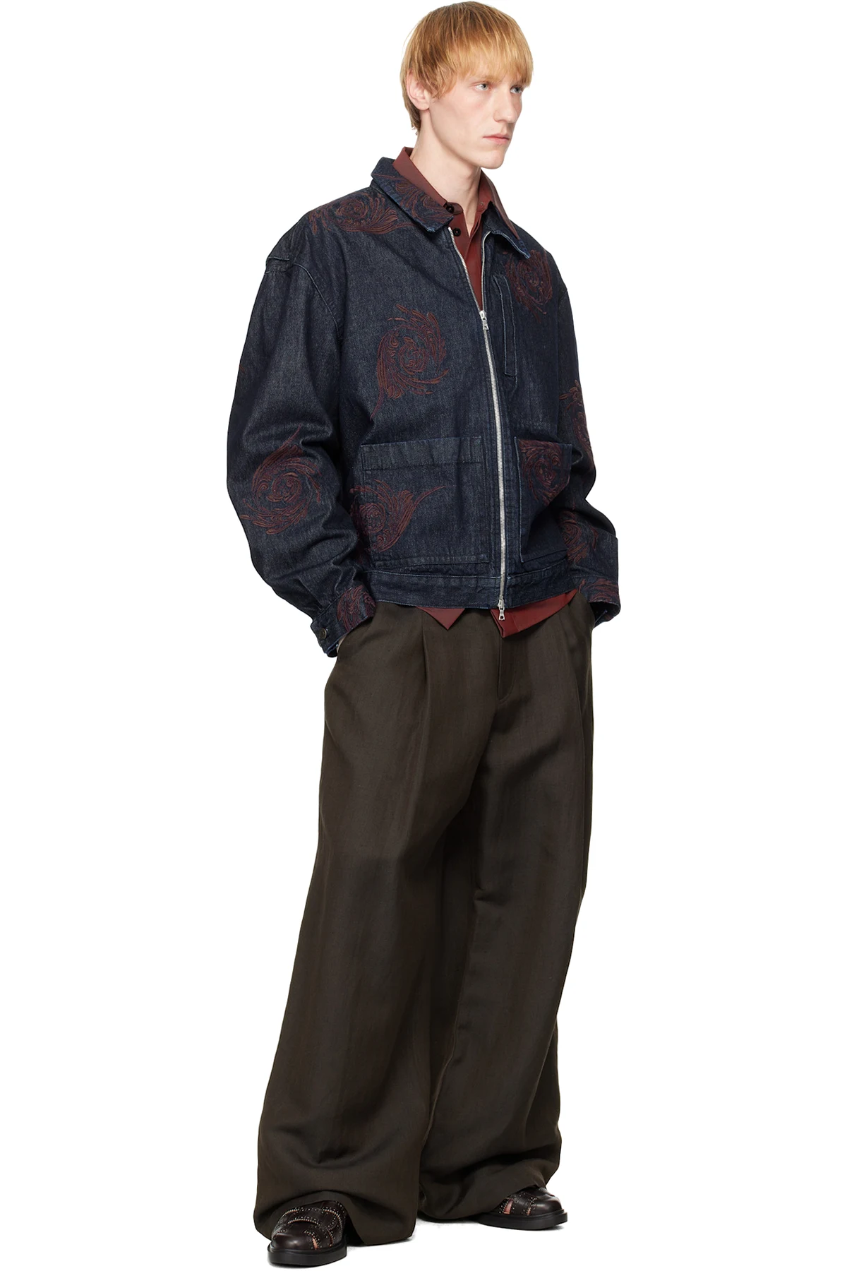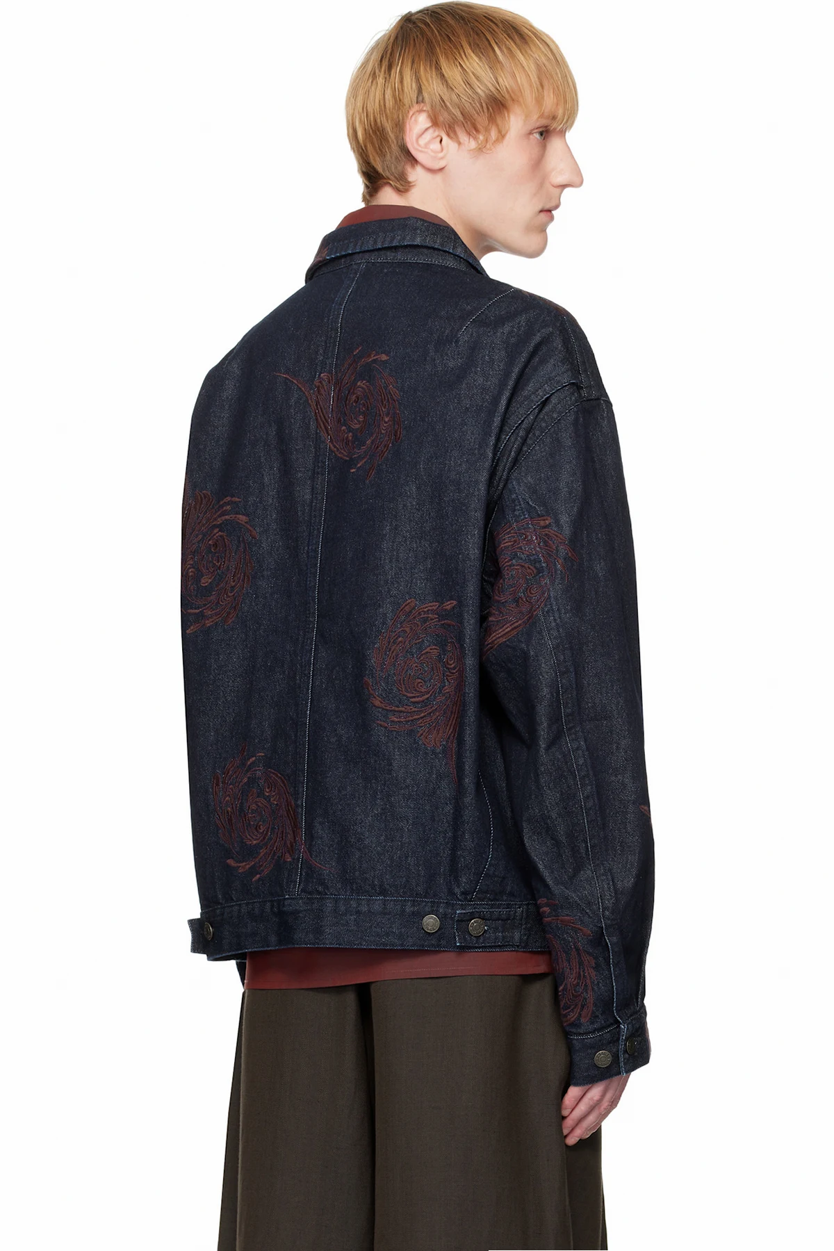 Dries Van Noten Navy Embroidered Pattern Denim Jacket