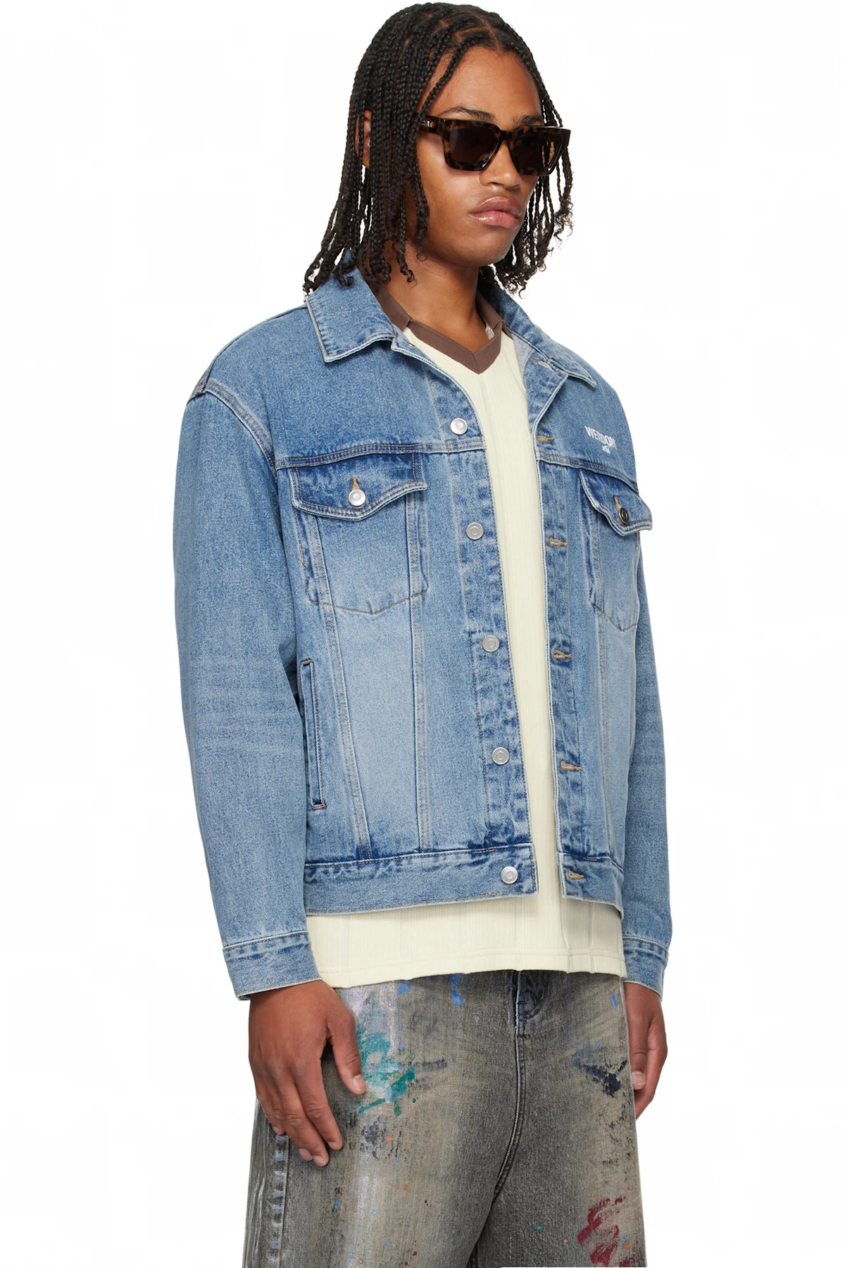 We11done Blue Logo Trucker Denim Jacket