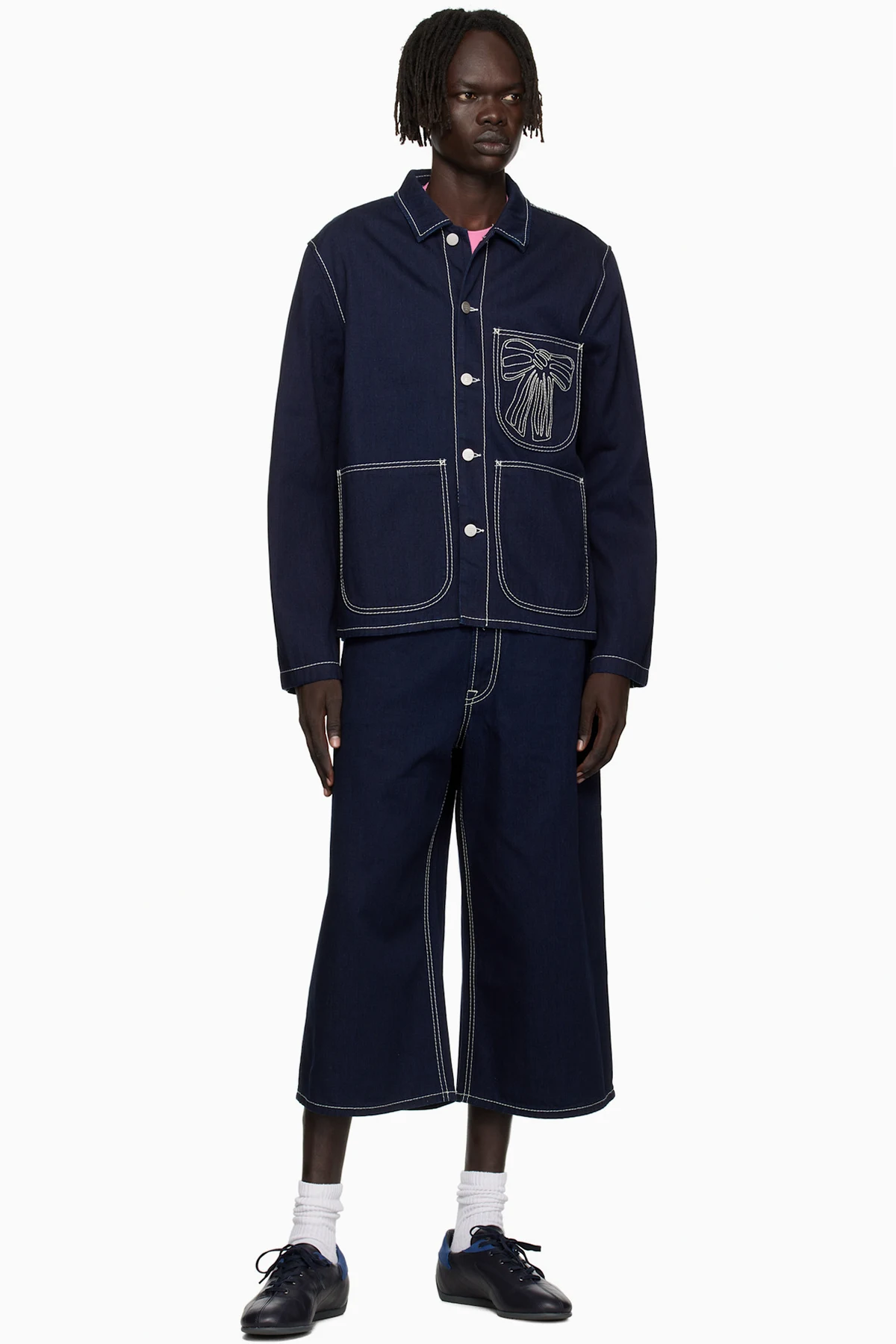 · Contrast stitching in white
