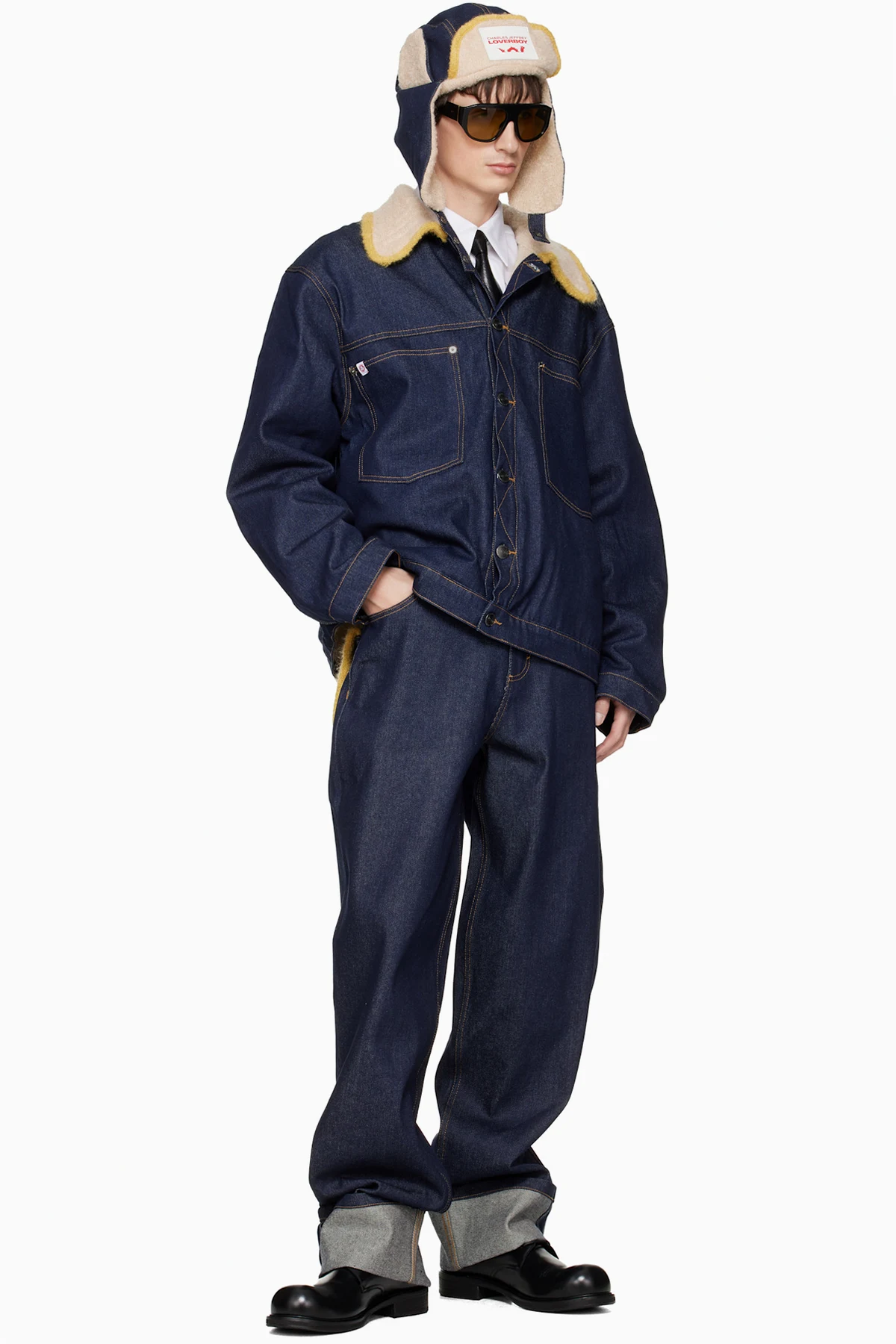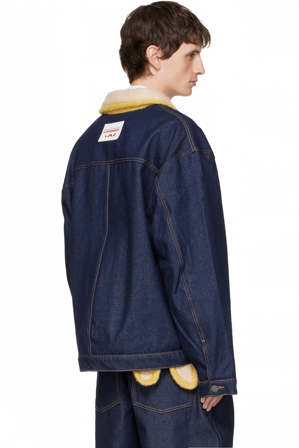Charles Jeffrey Loverboy Navy Knitted Collar Denim Jacket