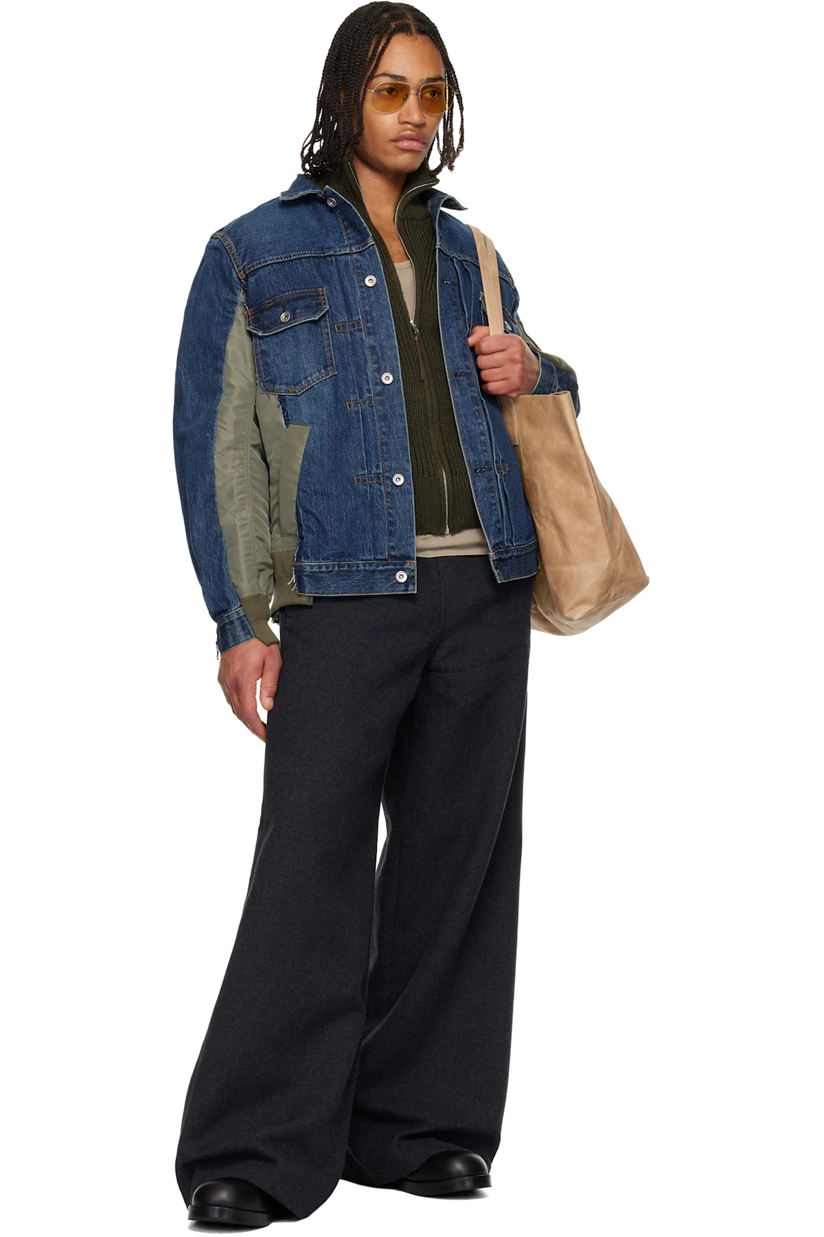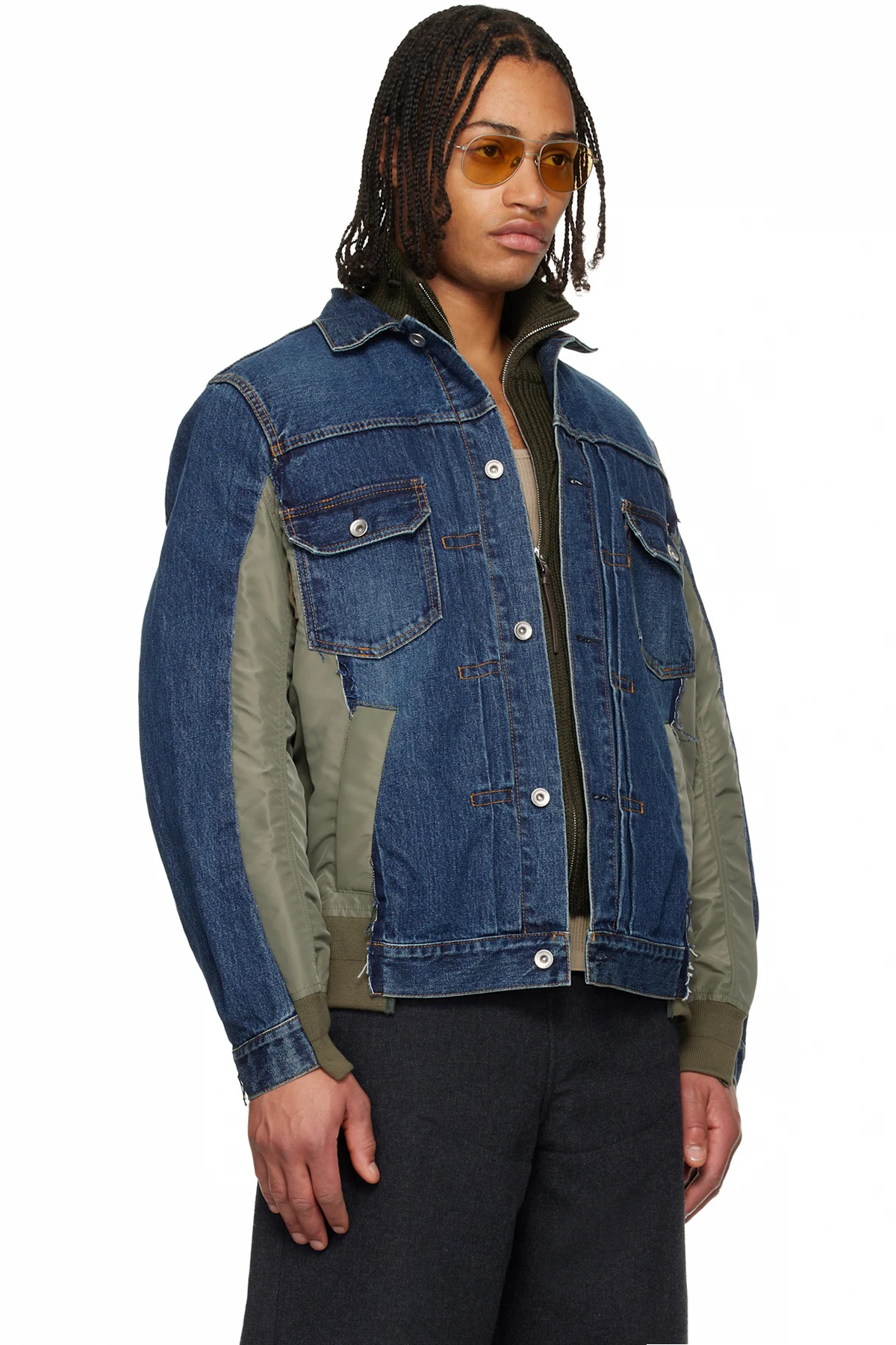 sacai Navy & Khaki Nylon Twill & Denim Jacket