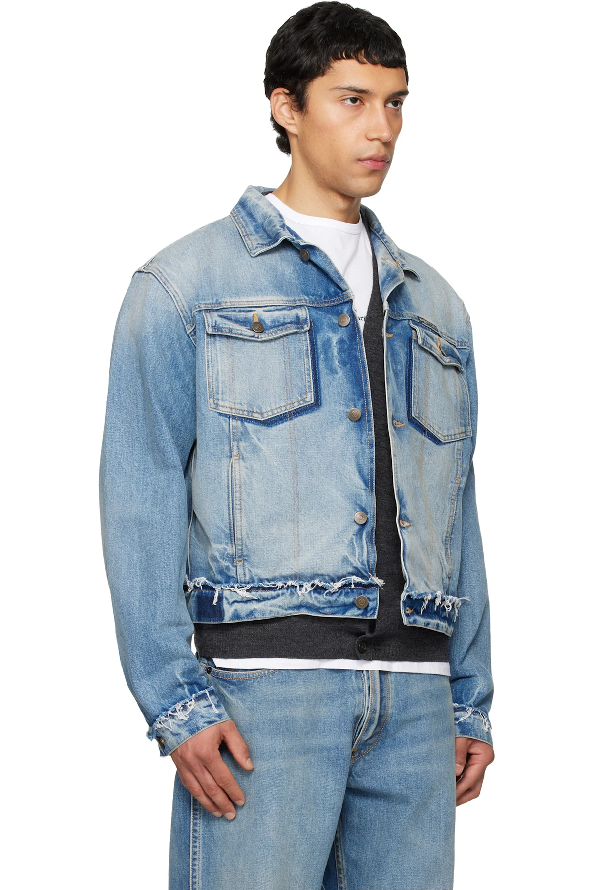 · Frayed edge at hem and barrel cuffs