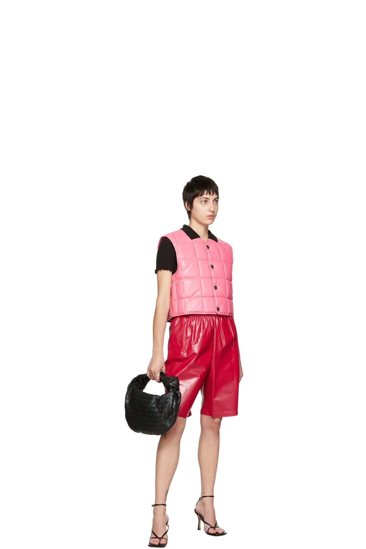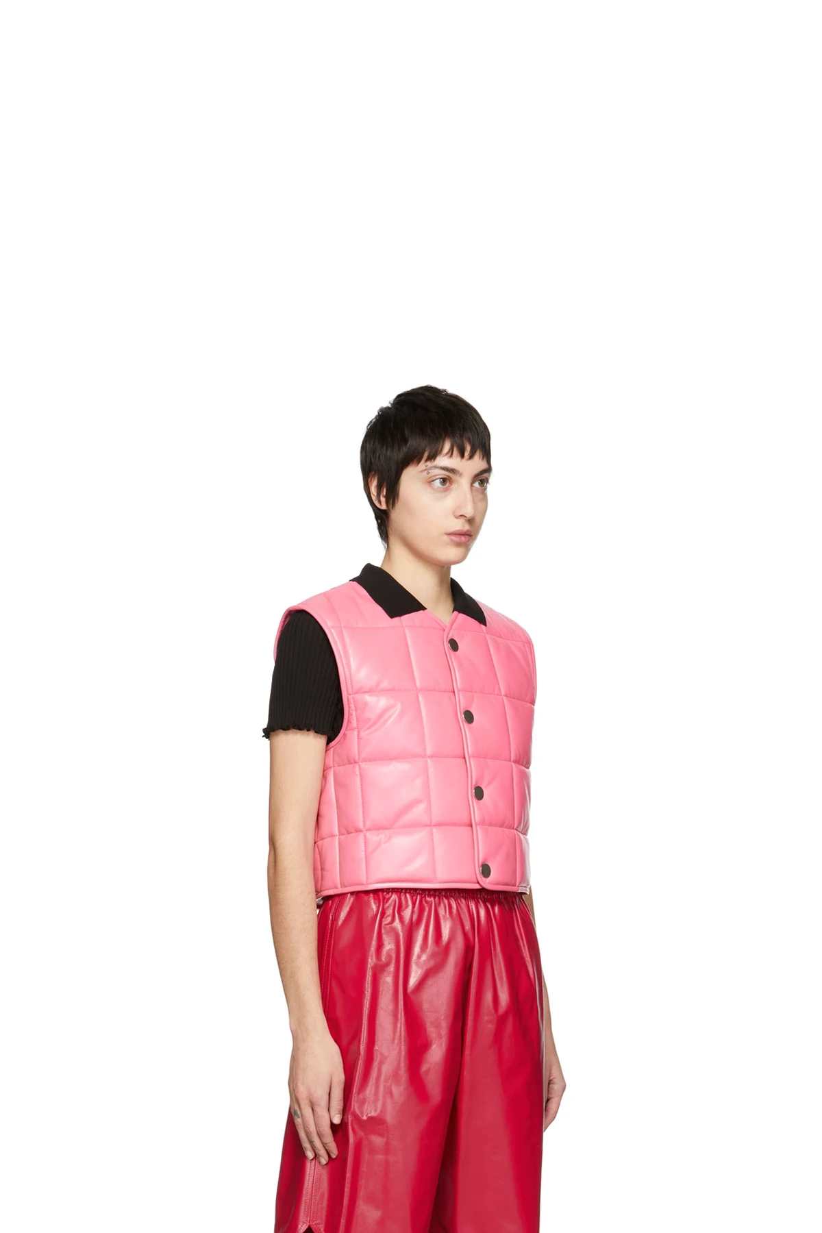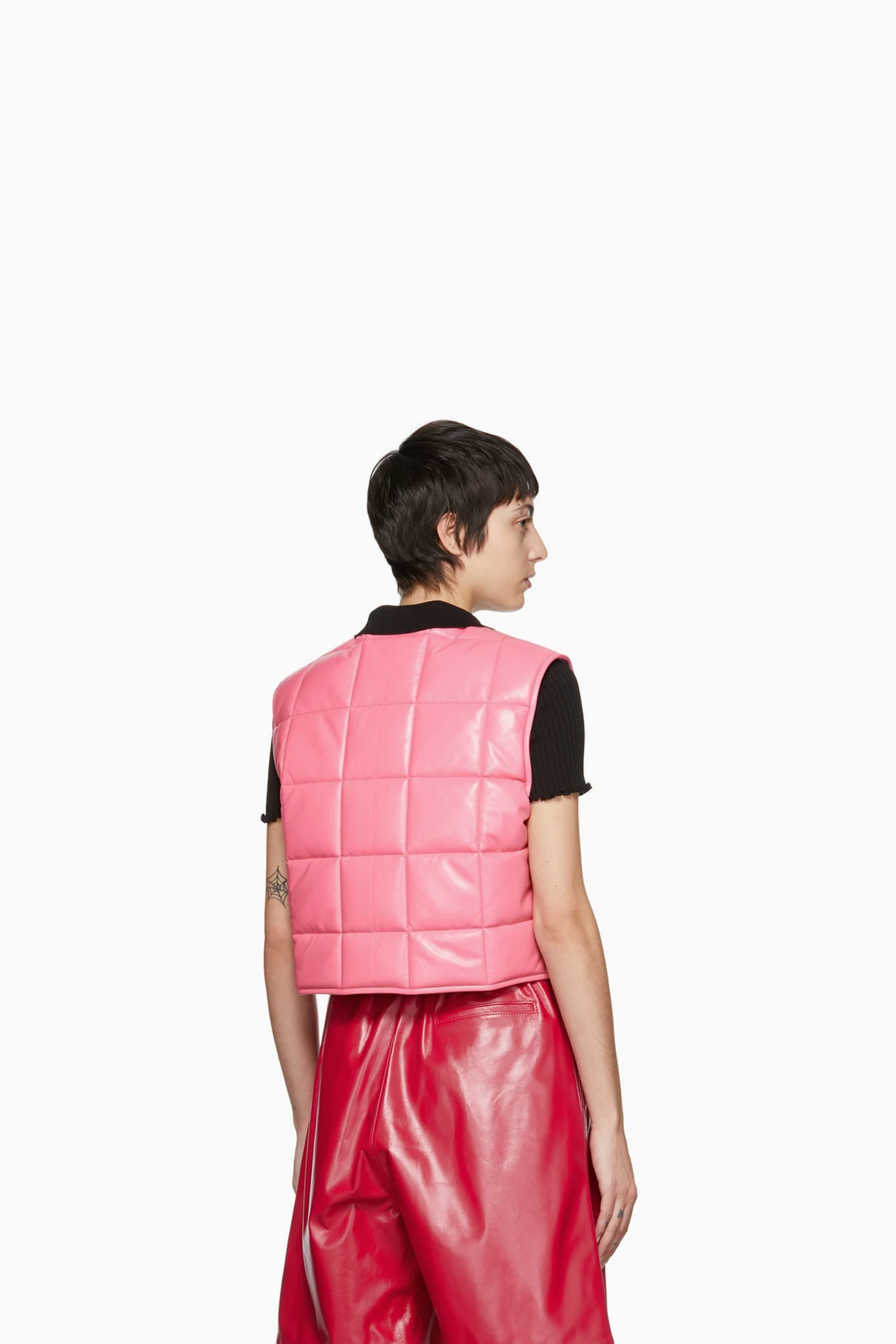 Sleeveless insulated quilted grained lambskin vest in pink.