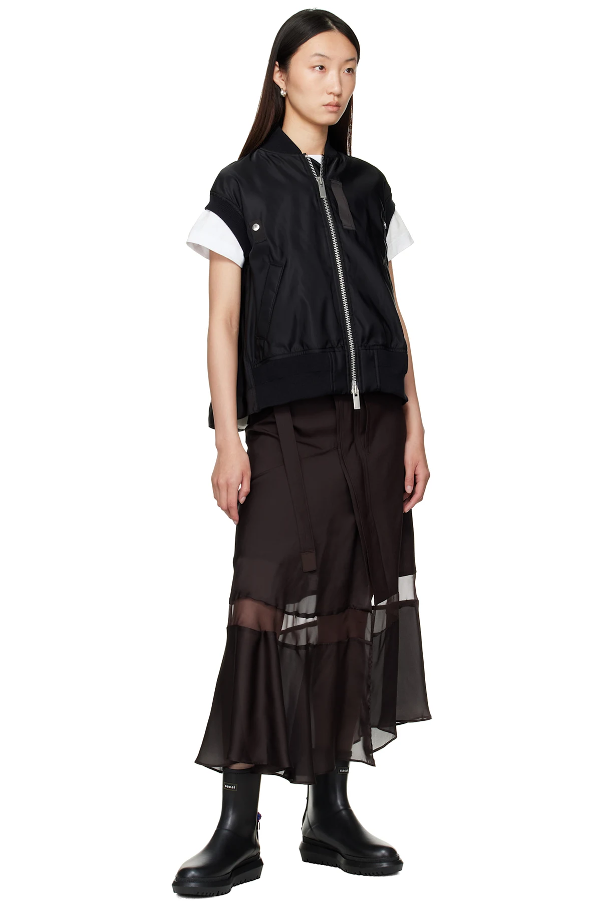 sacai Black Nylon Twill Vest