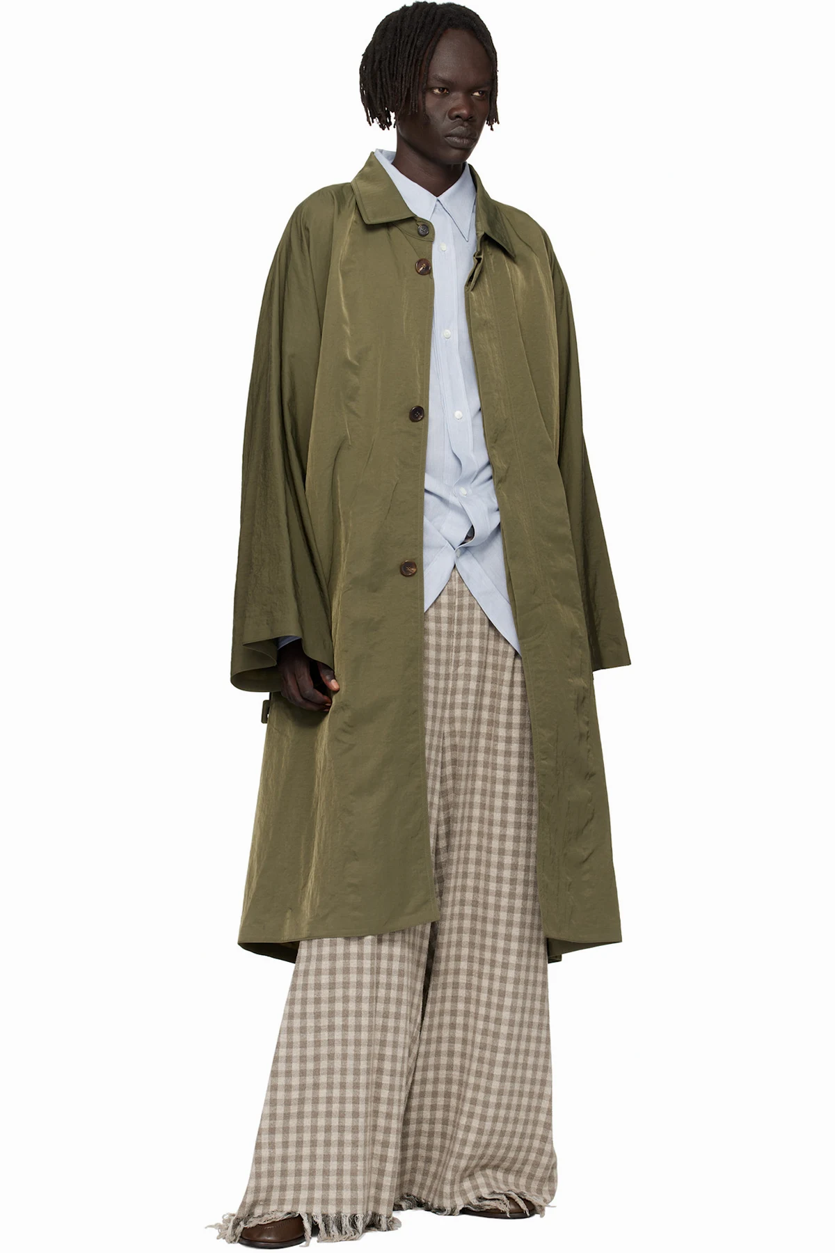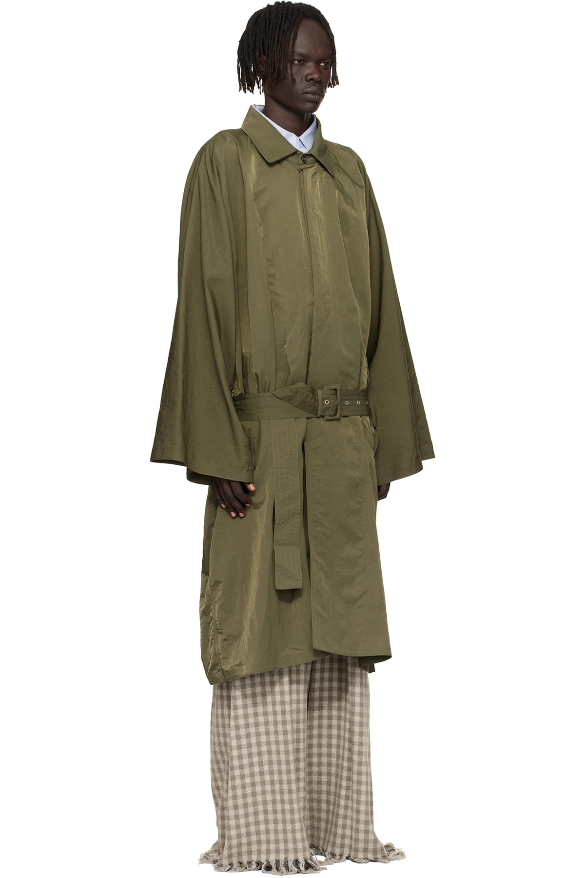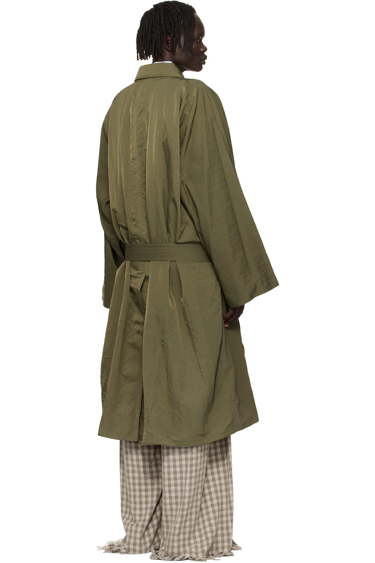 Hed Mayner Green Crinkled Trench Coat