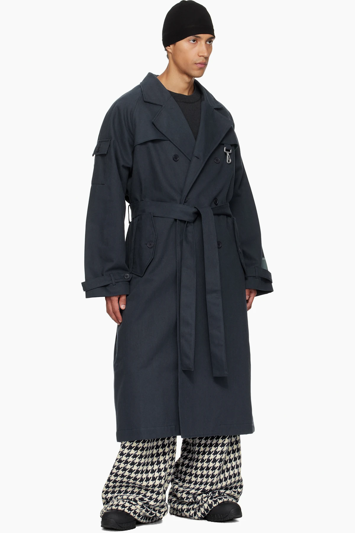 Cotton twill trench coat.