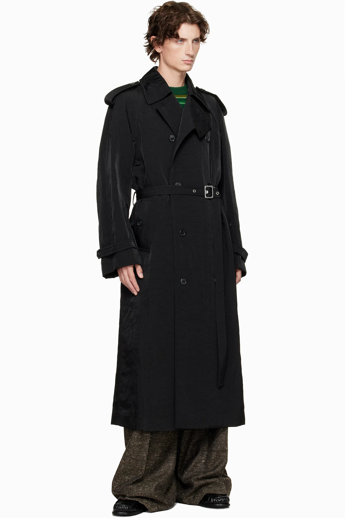 JW Anderson Black Double-Breasted Trench Coat