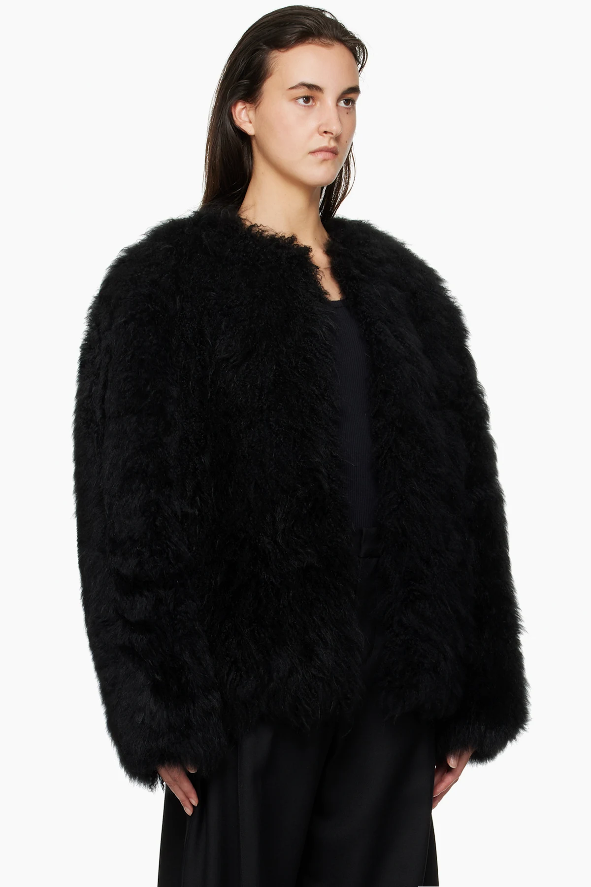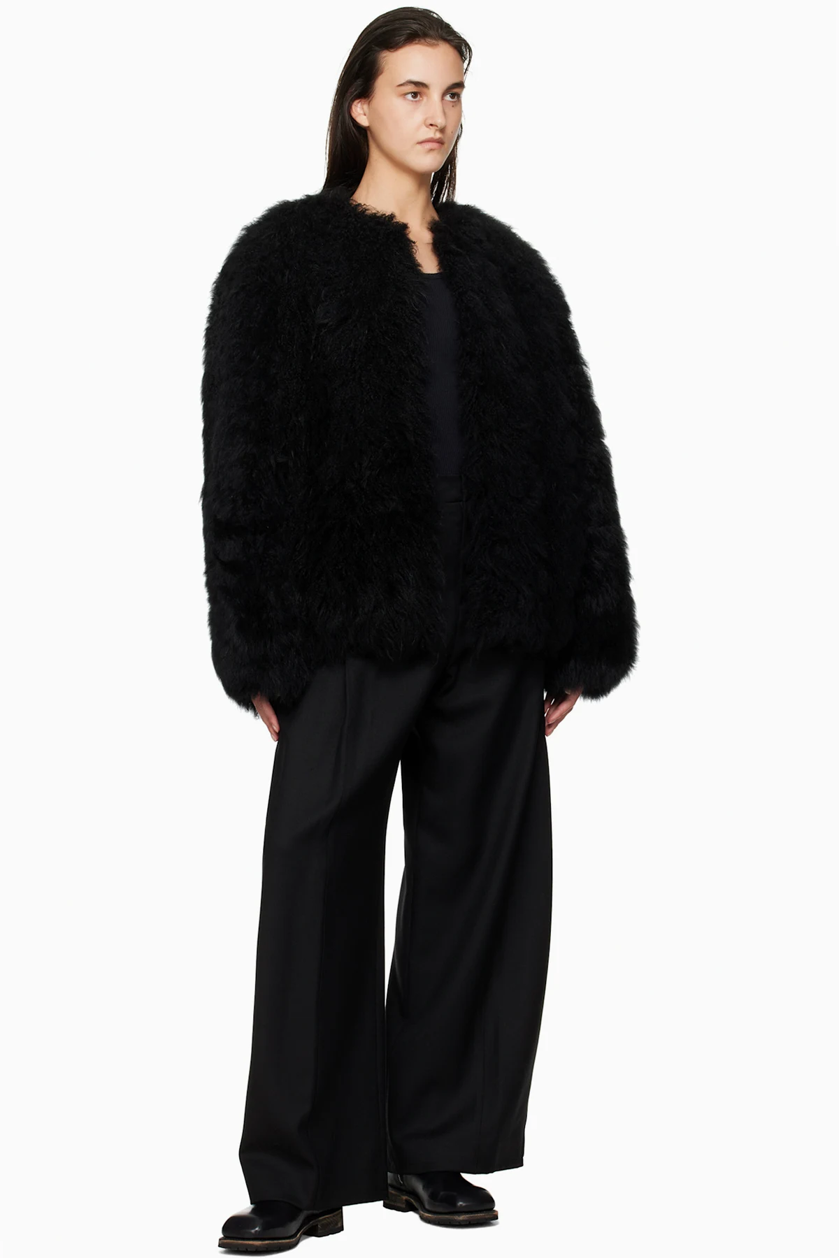 WOOYOUNGMI Black Oversized Fur Jacket