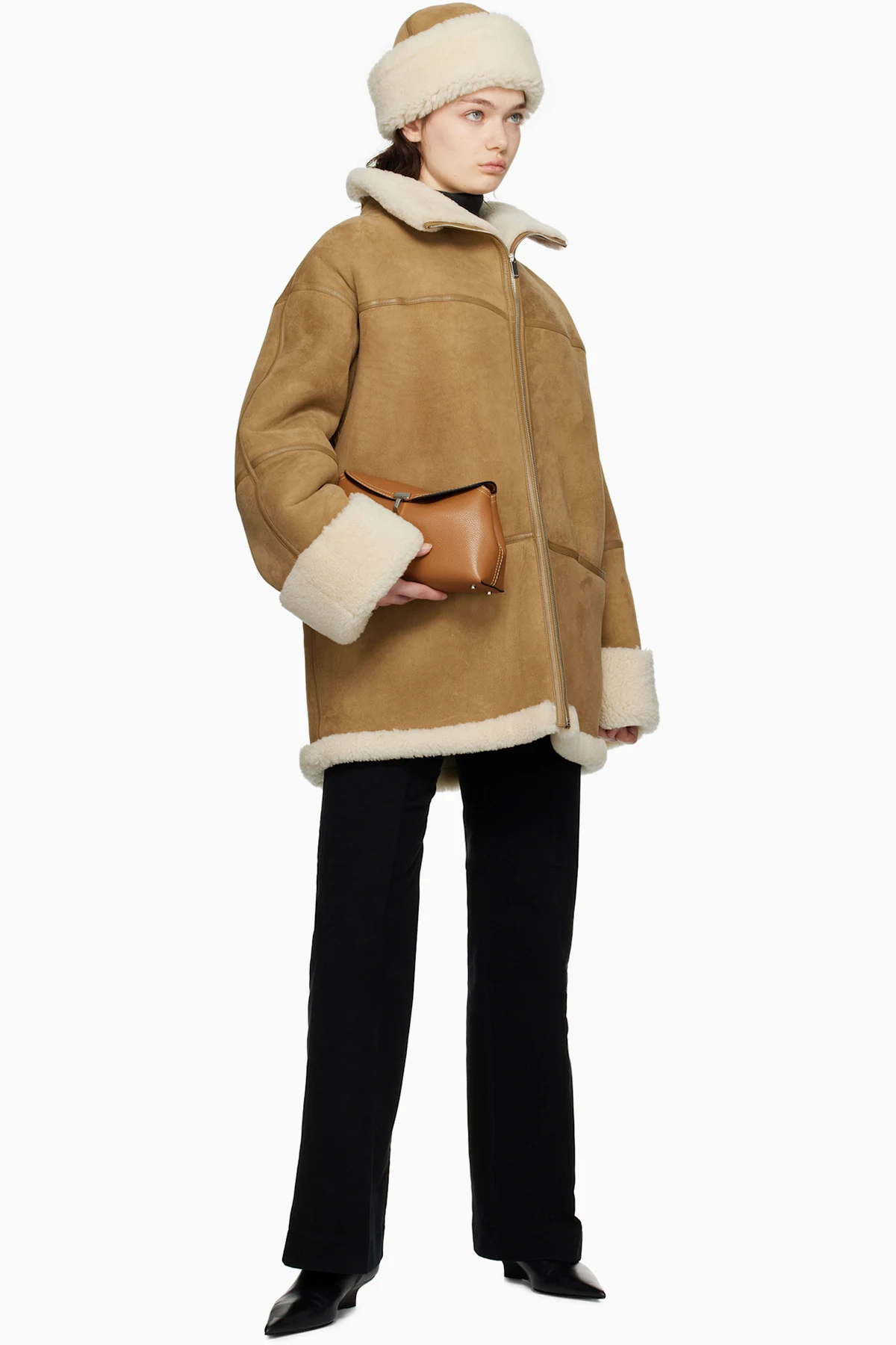 TOTEME Tan & Off-White Signature Shearling Jacket