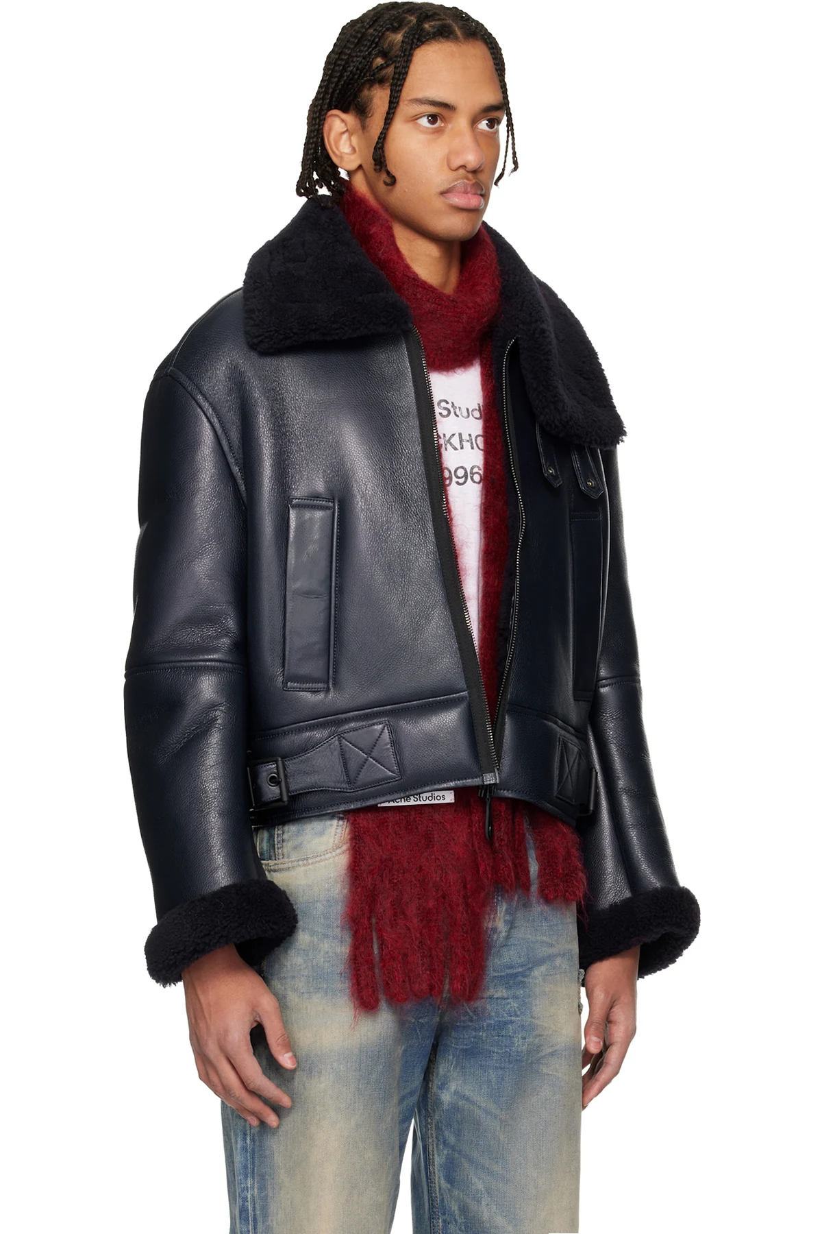 Acne Studios Navy Lambskin Shearling Jacket