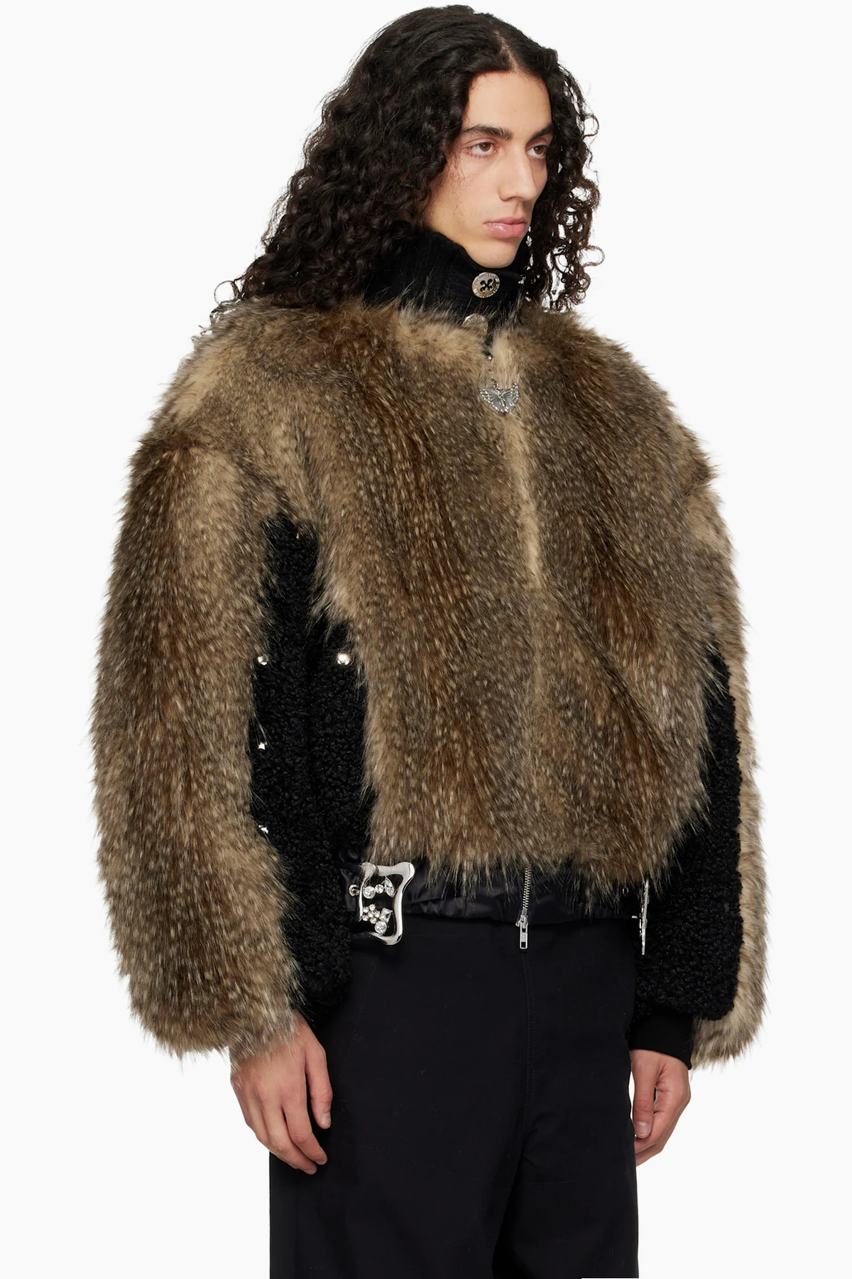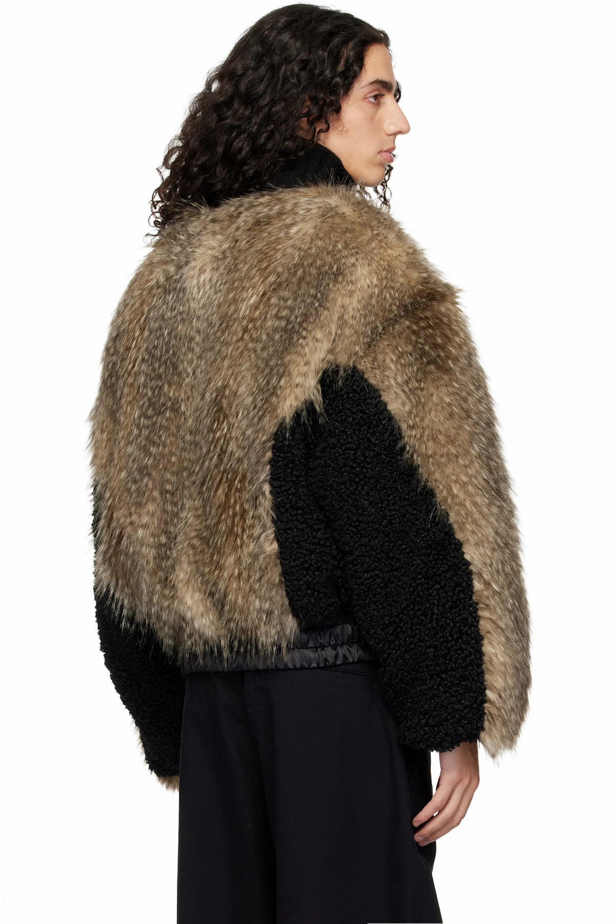 Padded faux-fur and bouclé bomber jacket.
