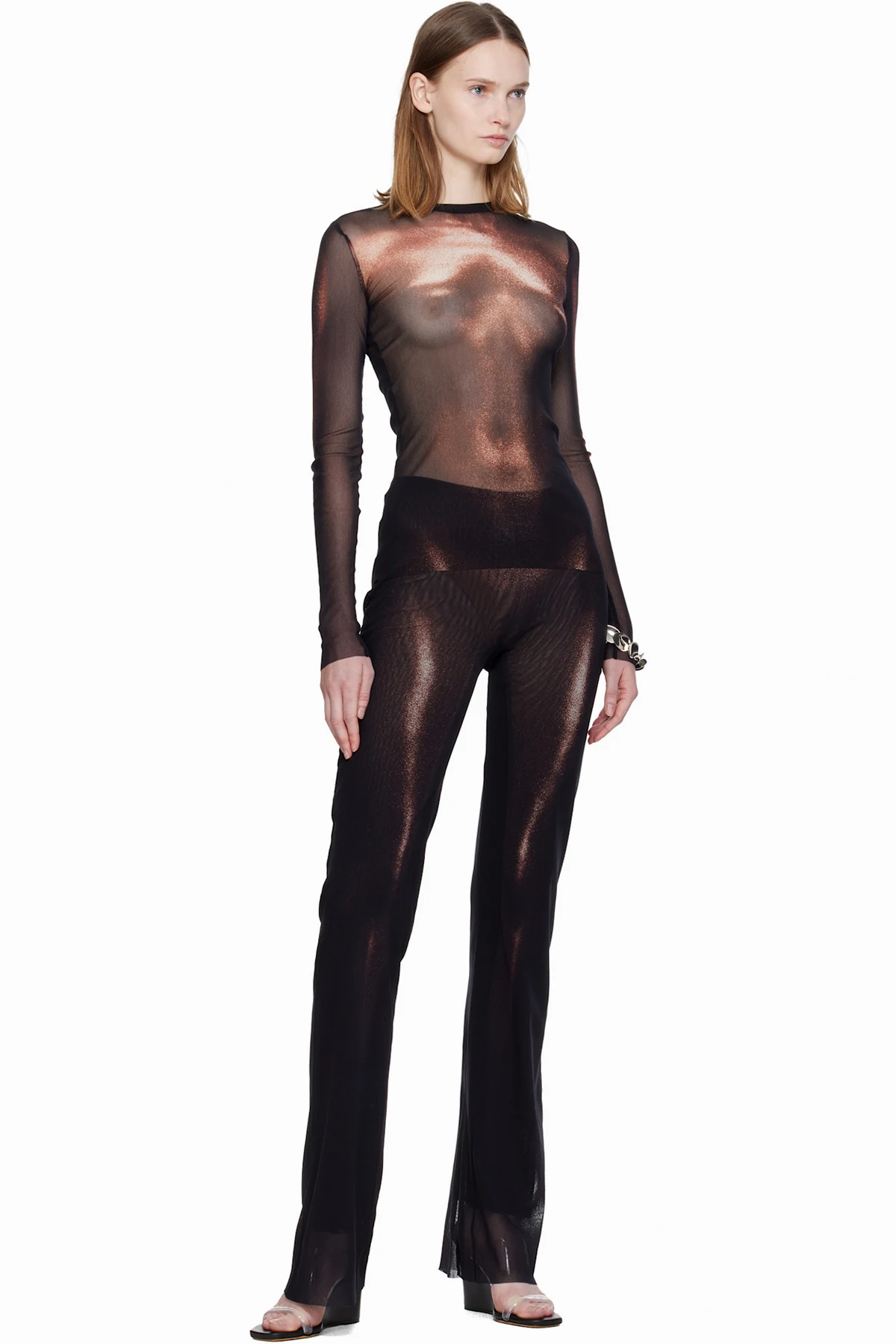 Semi-sheer nylon tulle lounge pants.
