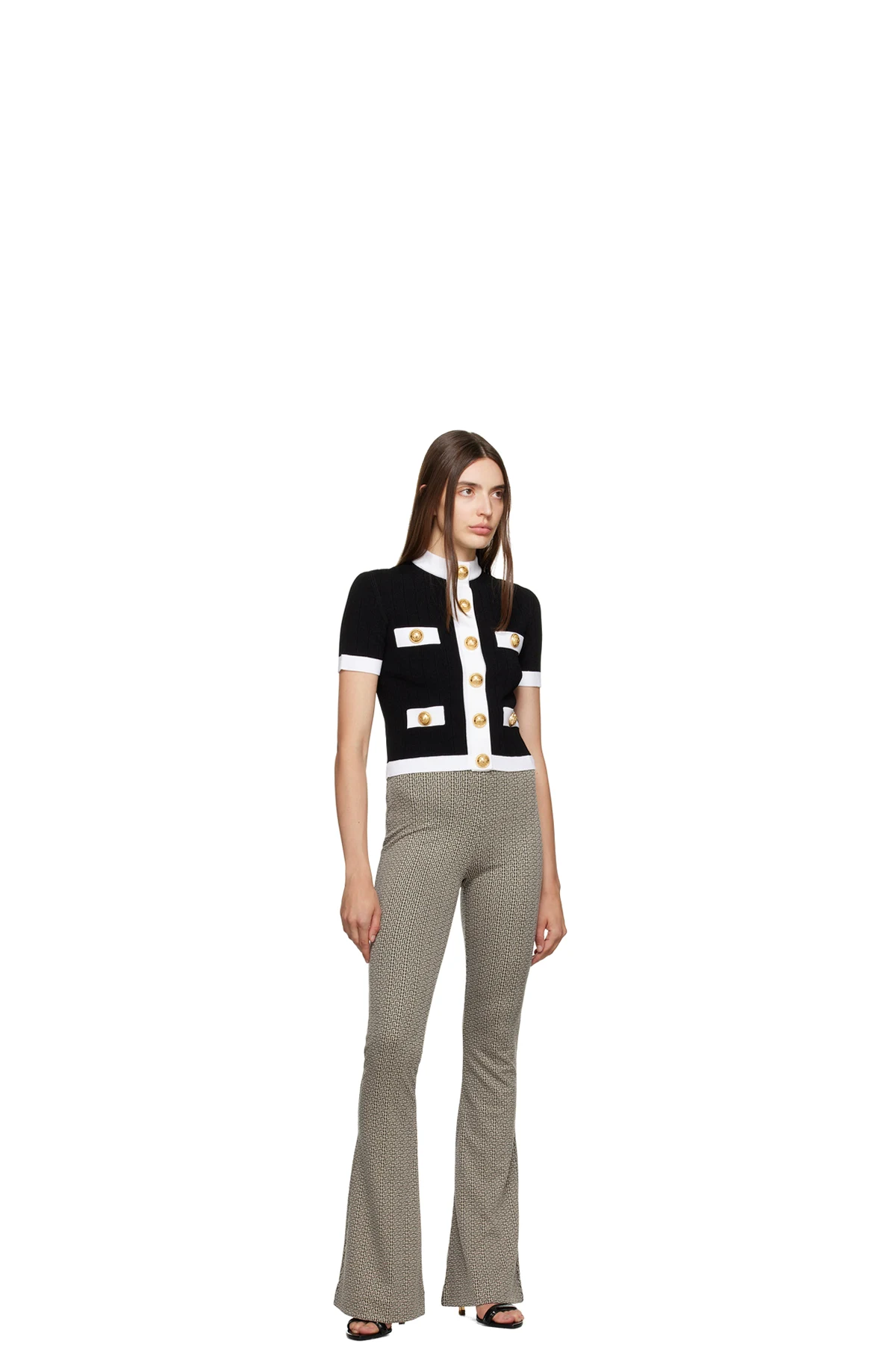 Flared knit stretch viscose-blend lounge pants. Jacquard logo graphic pattern throughout.