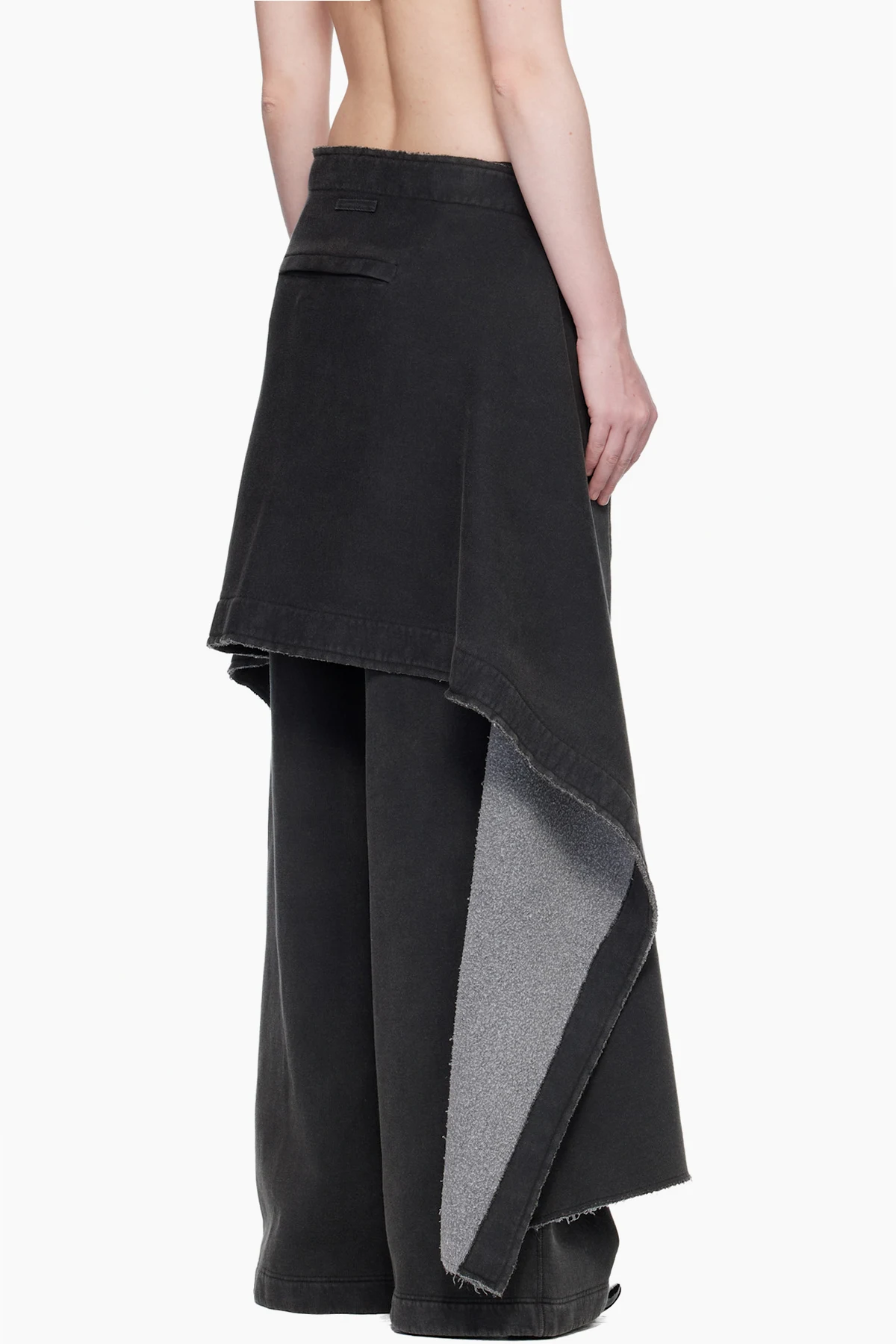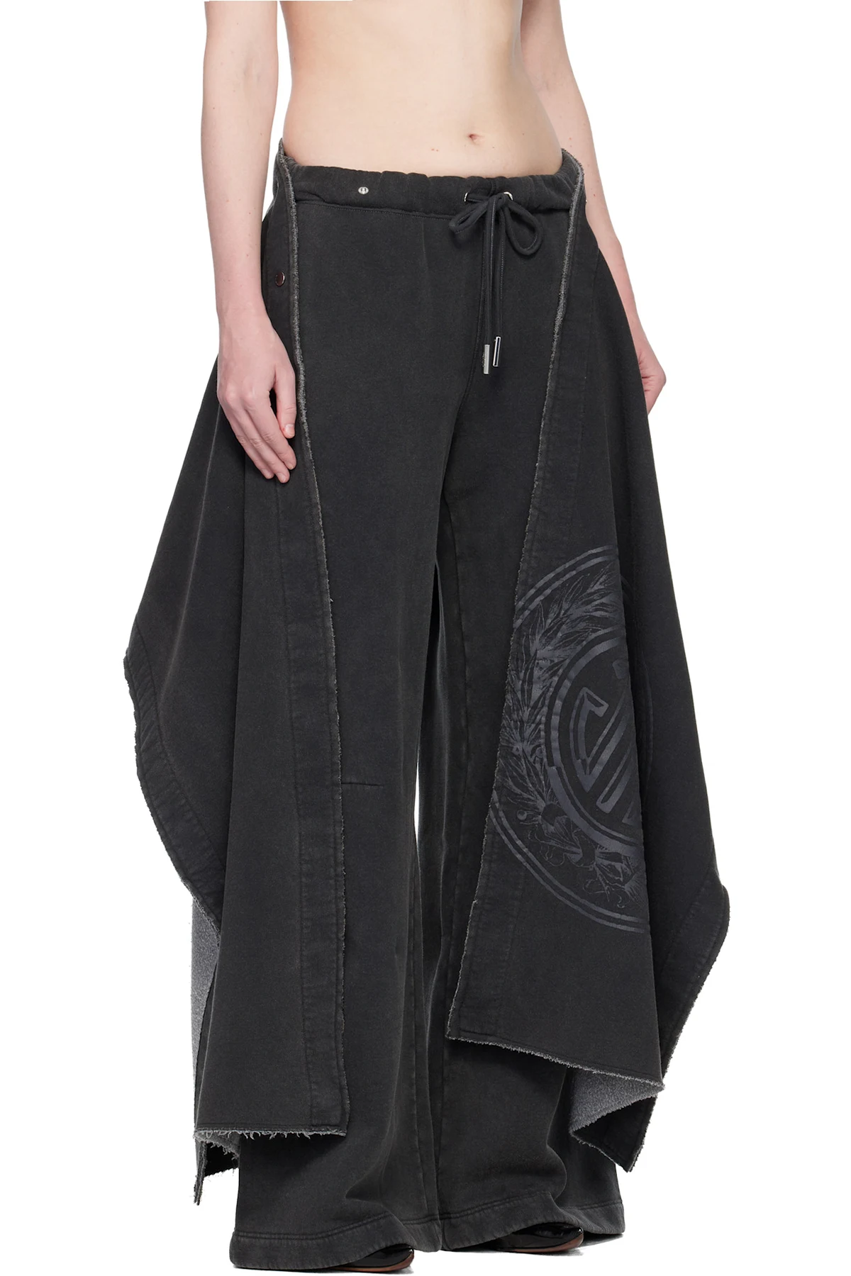 Brushed cotton-blend fleece sweatpants. Detachable press-stud panel with raw edges, printed logo graphic, and zip pocket at waistband.