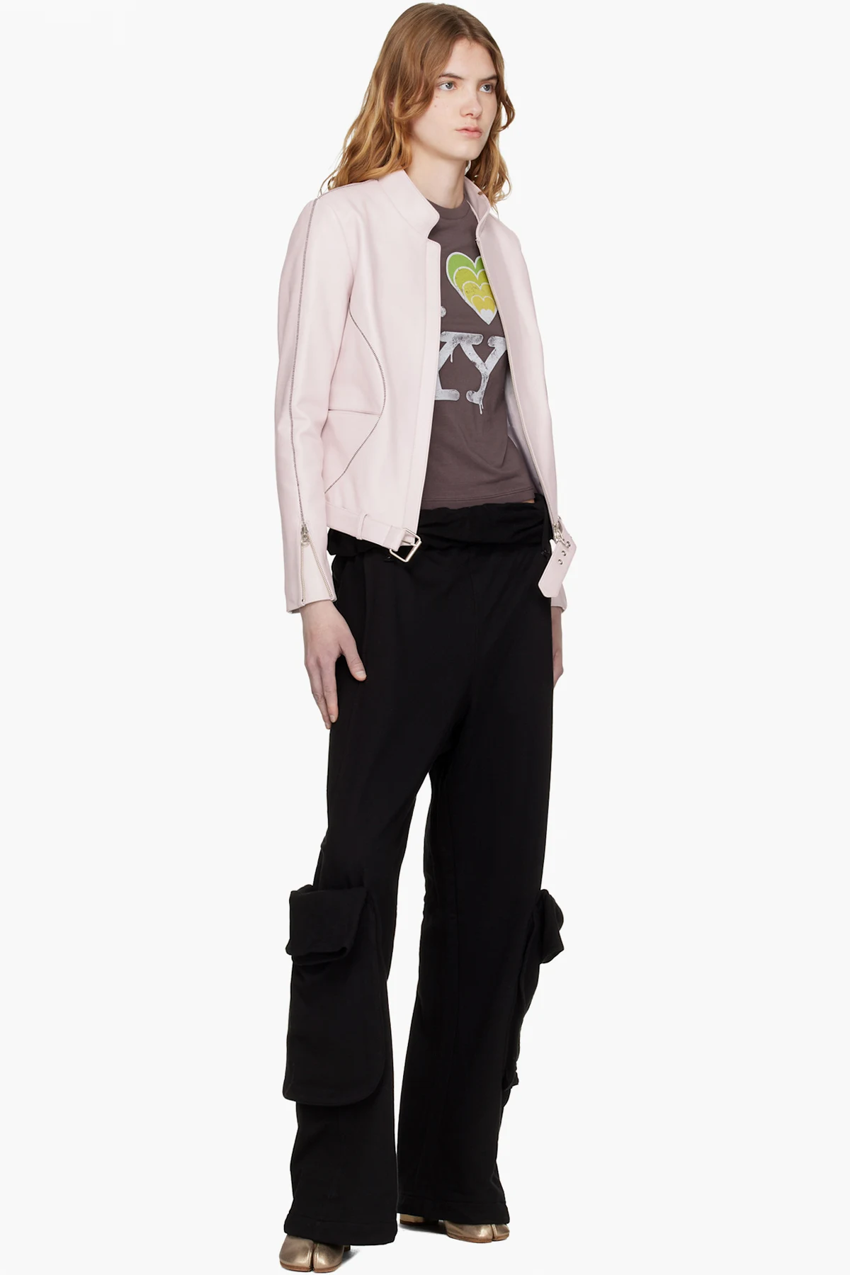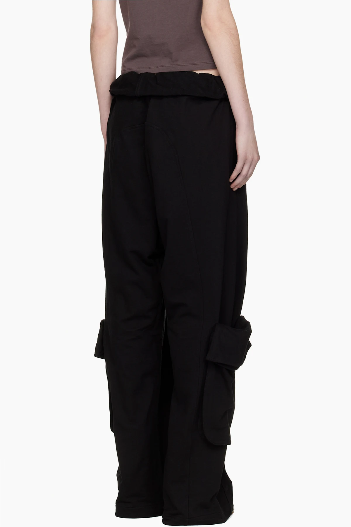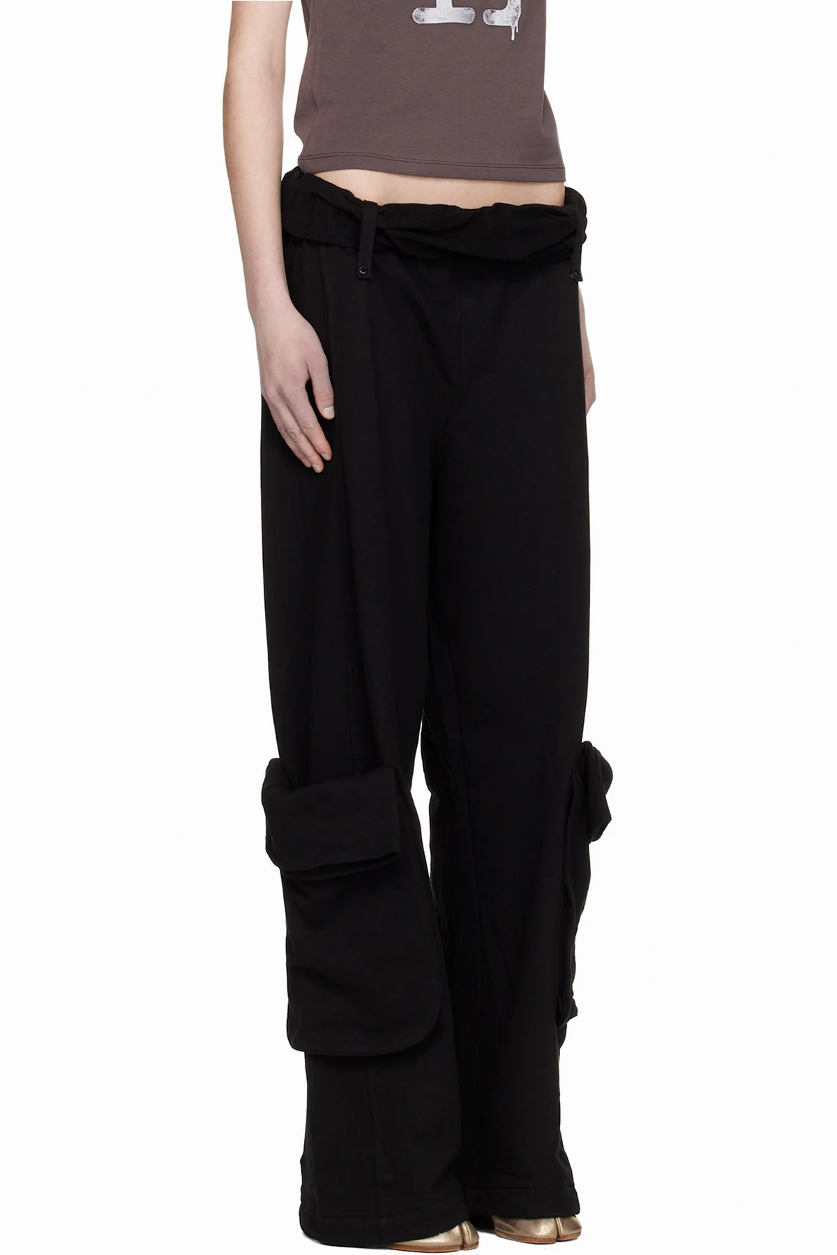 OPEN YY Black Rolled Waist Sweat Cargo Pants