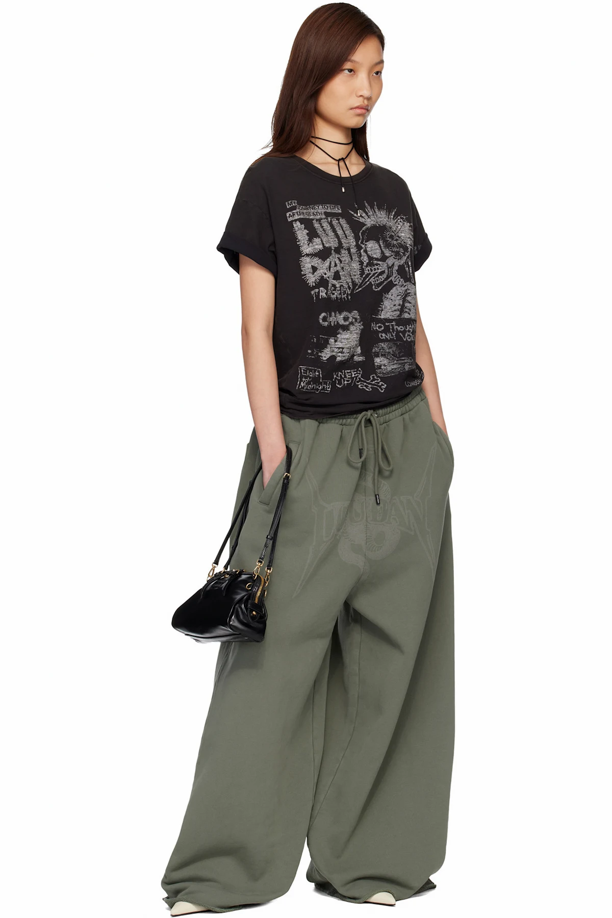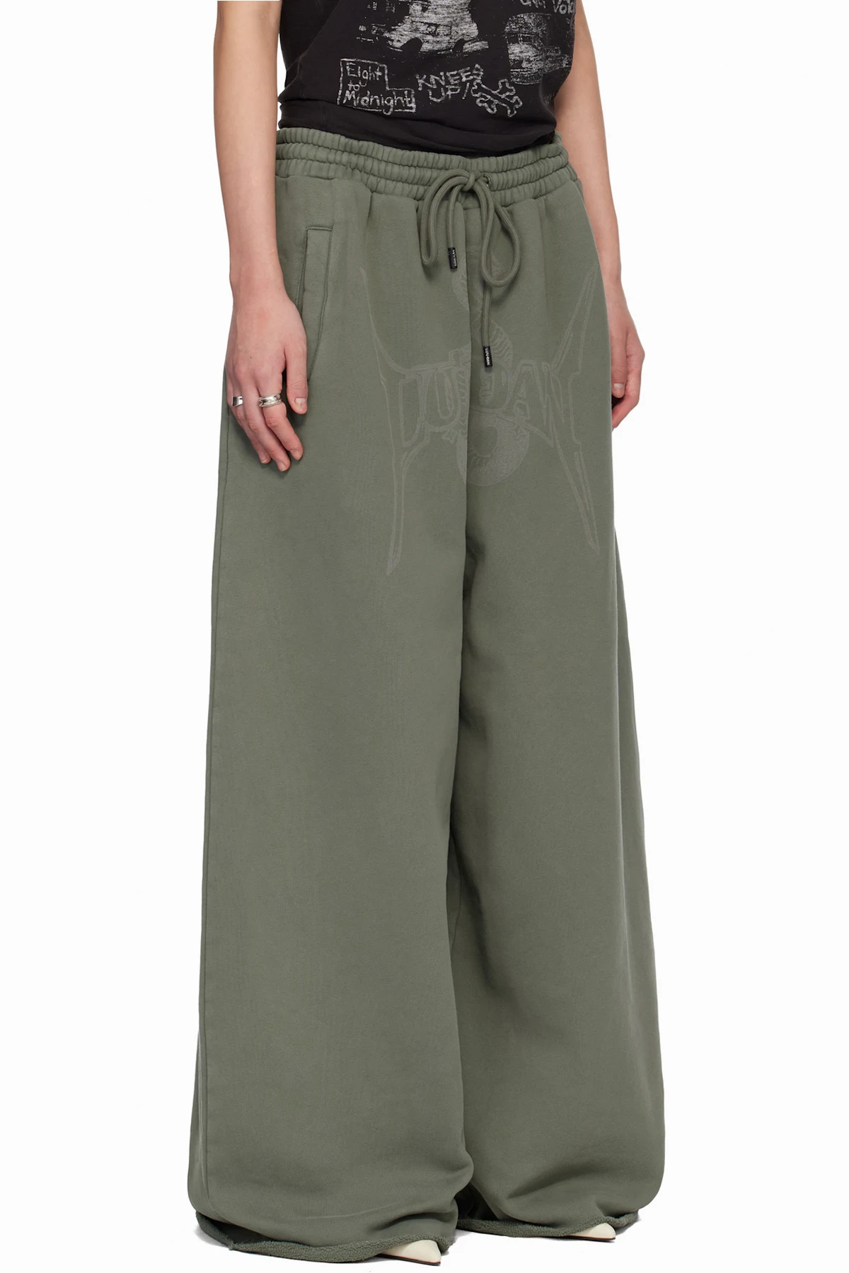 LU'U DAN Green Raw-Cut Bontan Sweatpants