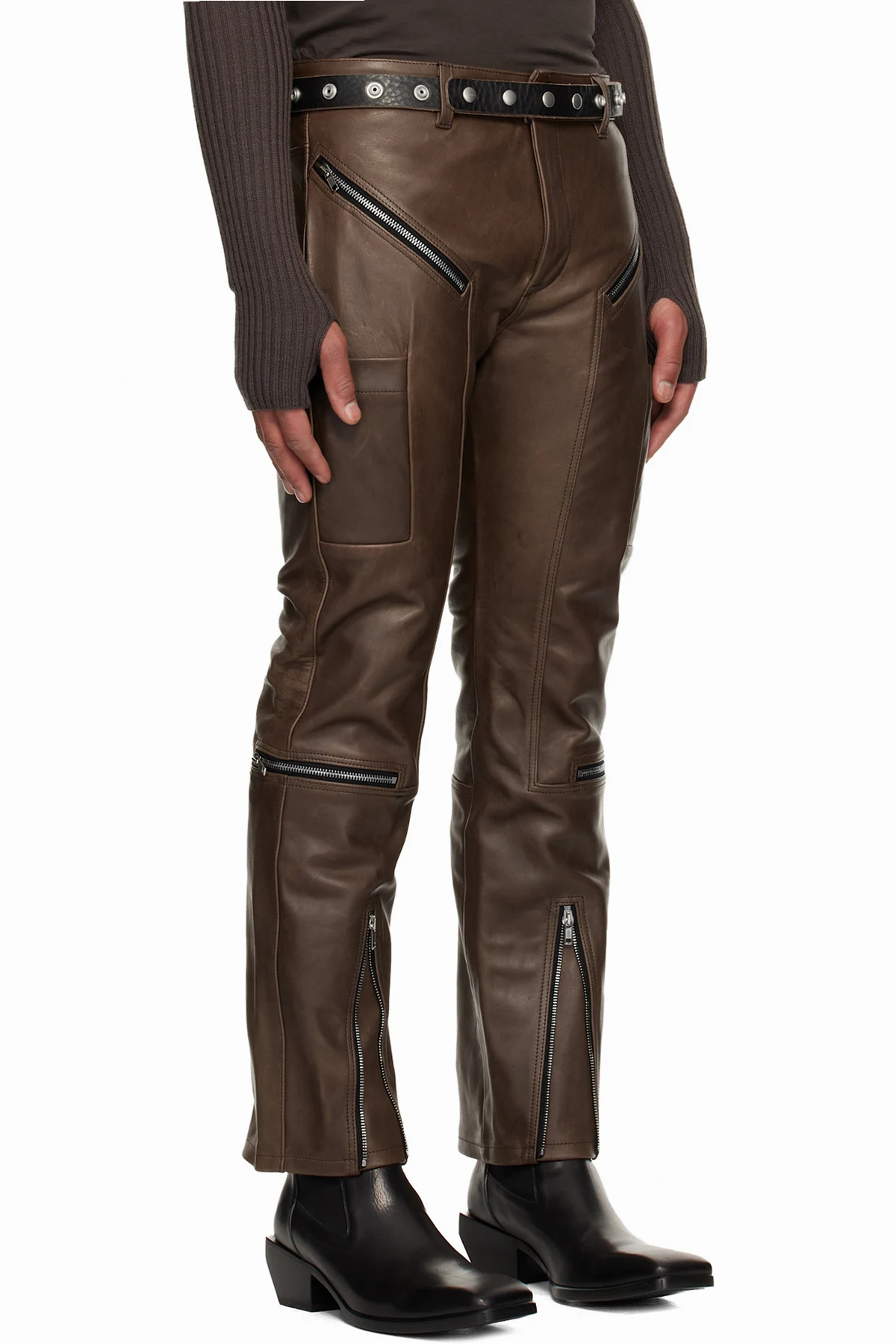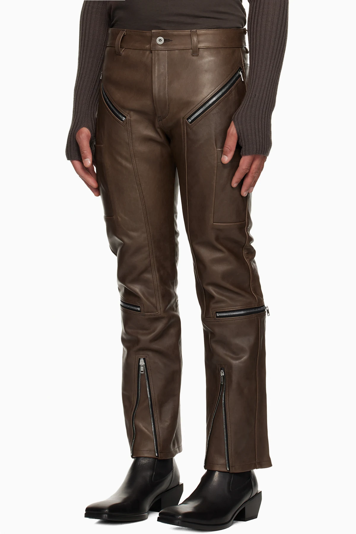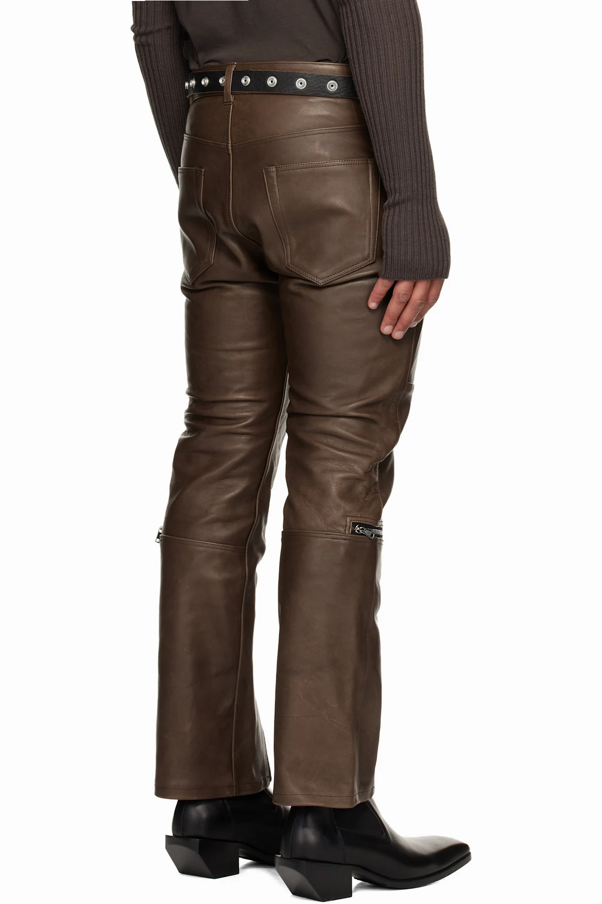 Rick Owens Brown Concordians Headon Leather Pants