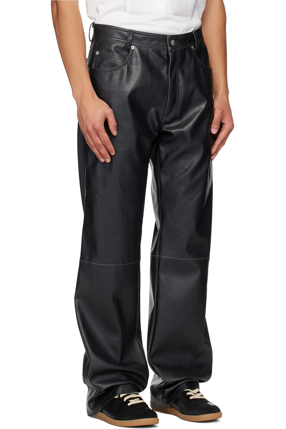 MM6 Maison Margiela Black 5 Pockets Faux-Leather Pants