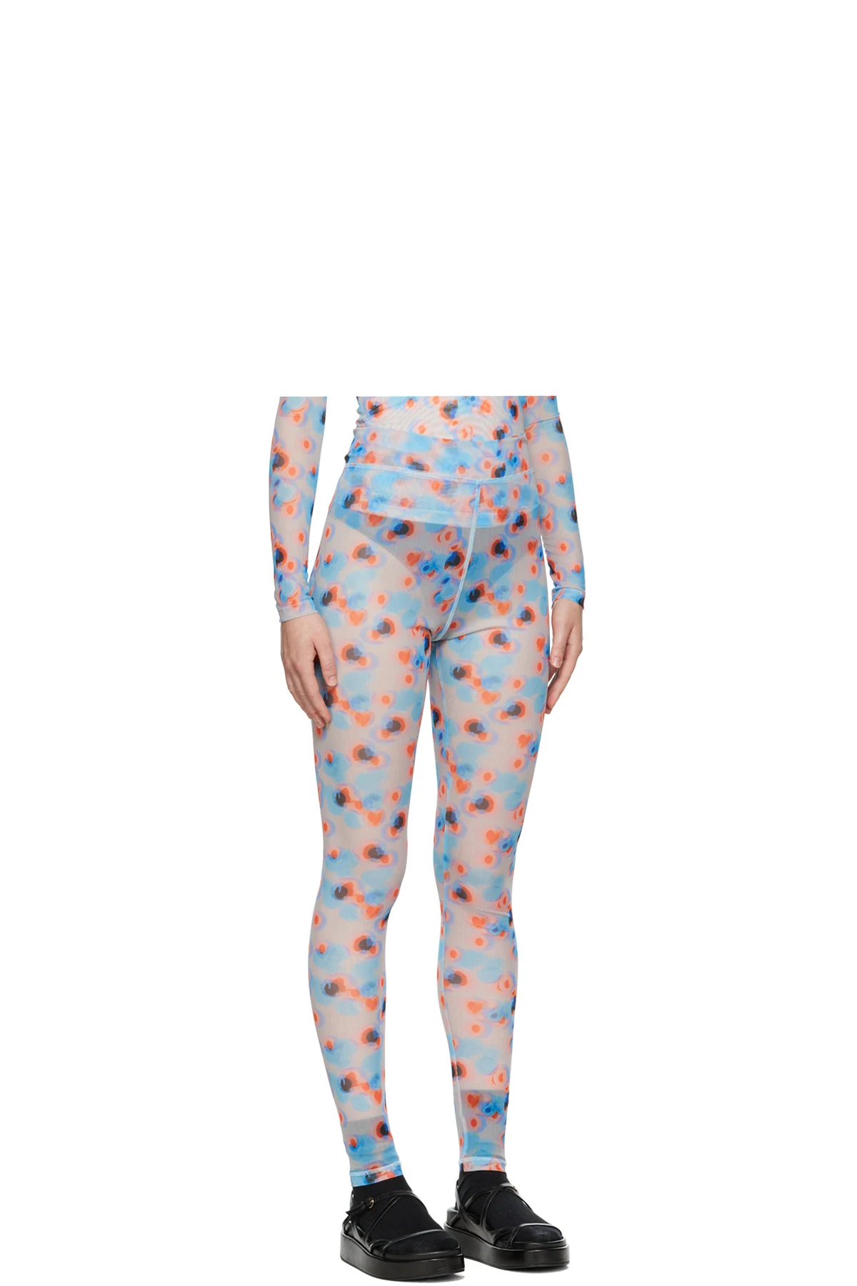 Semi-sheer stretch recycled polyester mesh leggings. Graphic pattern printed throughout.