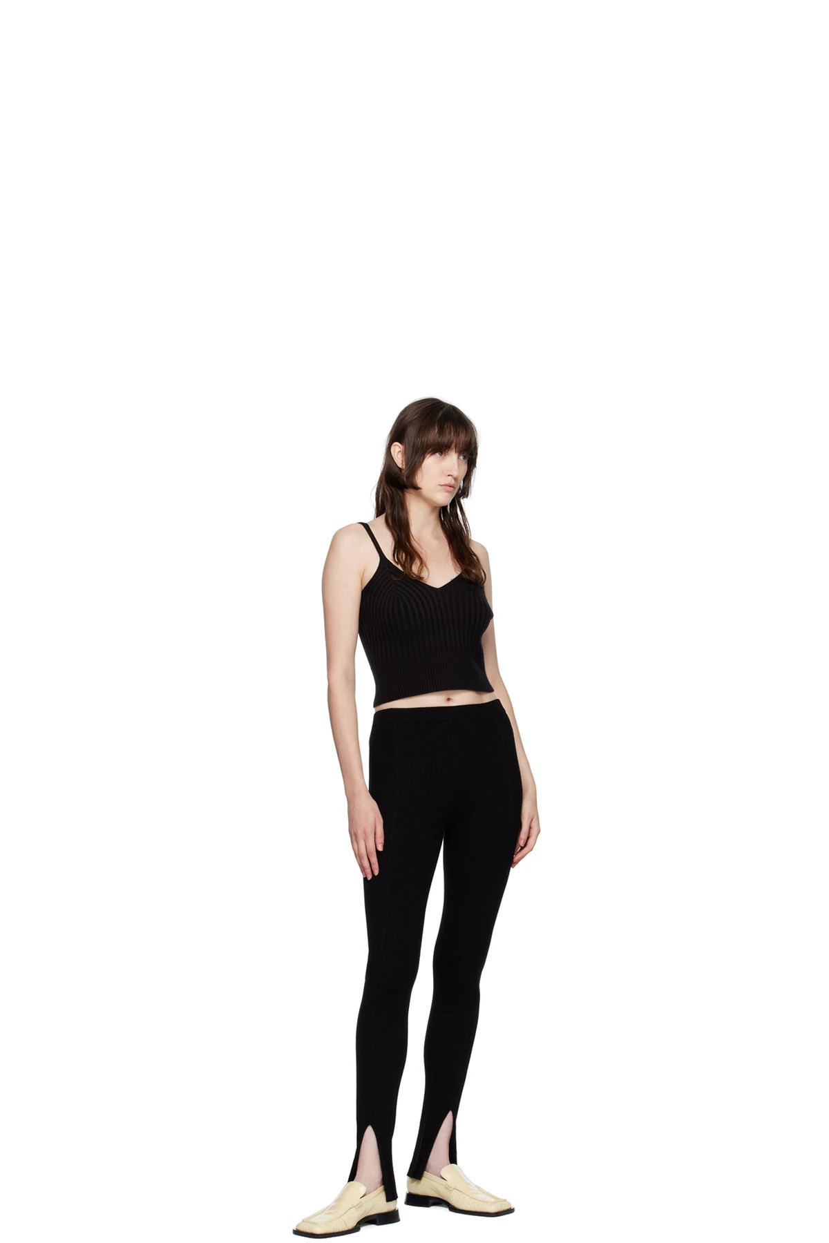 Rib knit FSC-certified viscose and polyester-blend leggings.