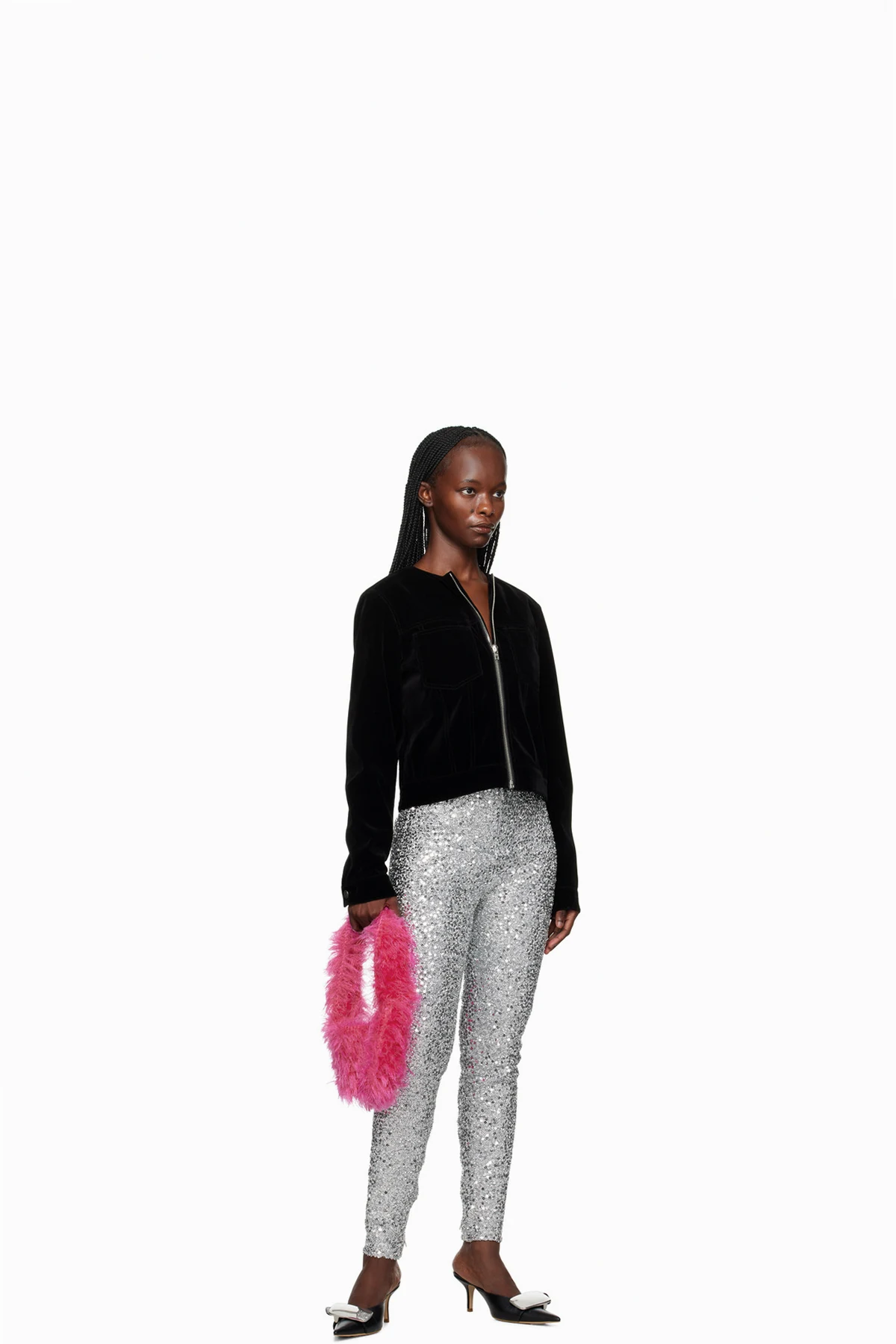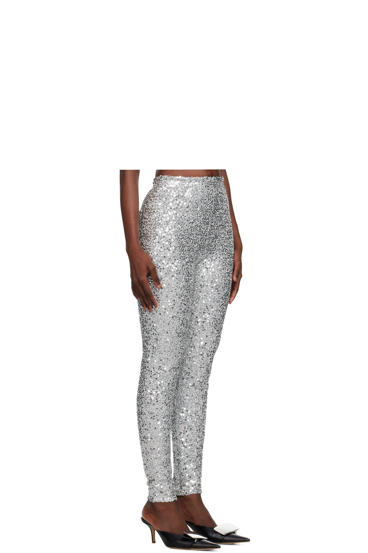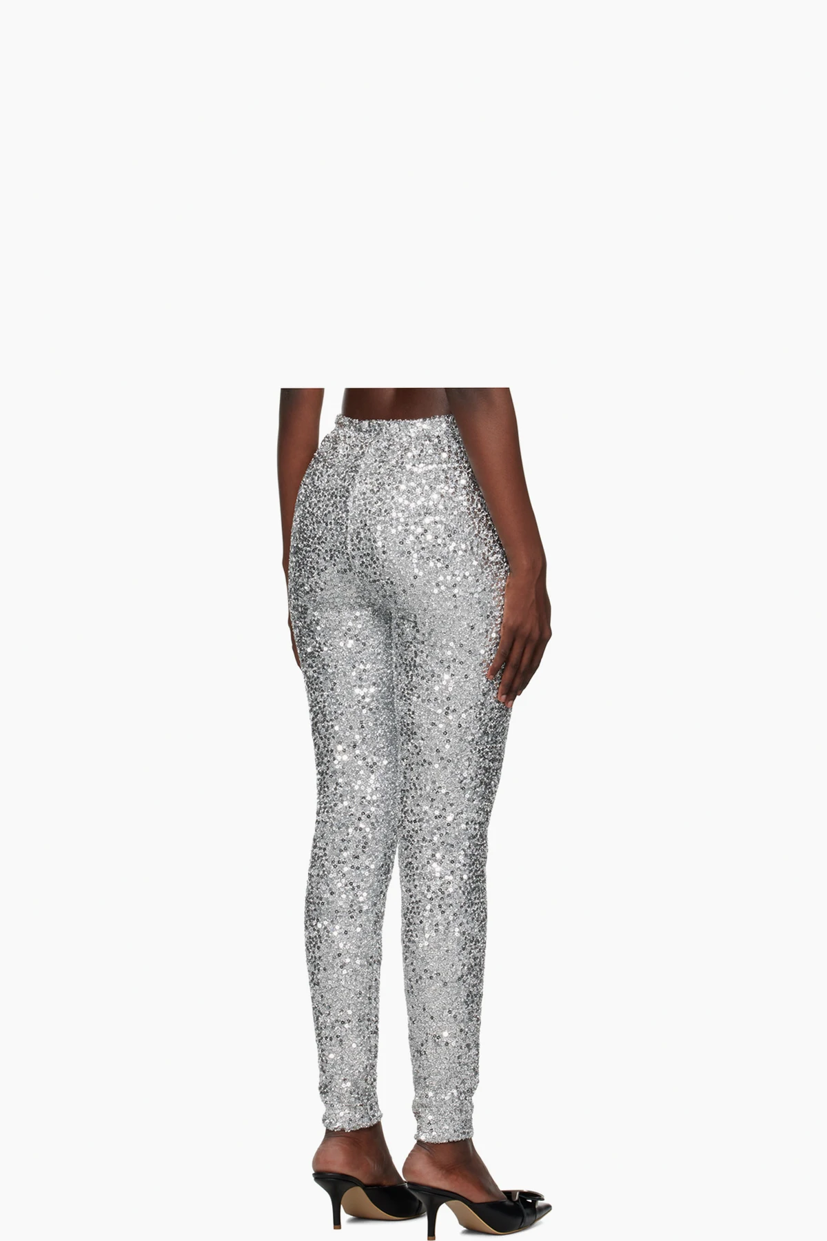 Knit polyester leggings. Sequins and metallic thread detailing throughout.