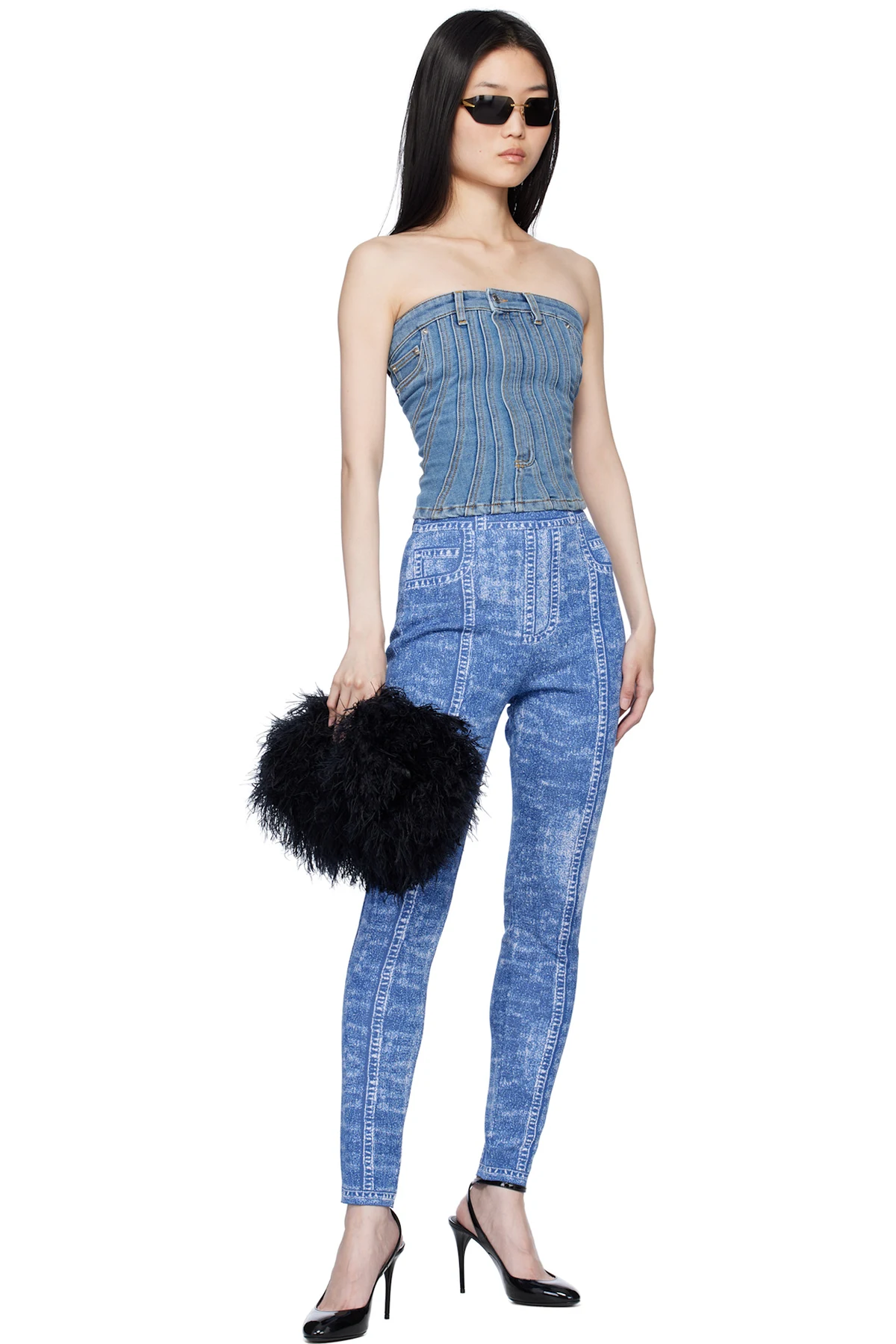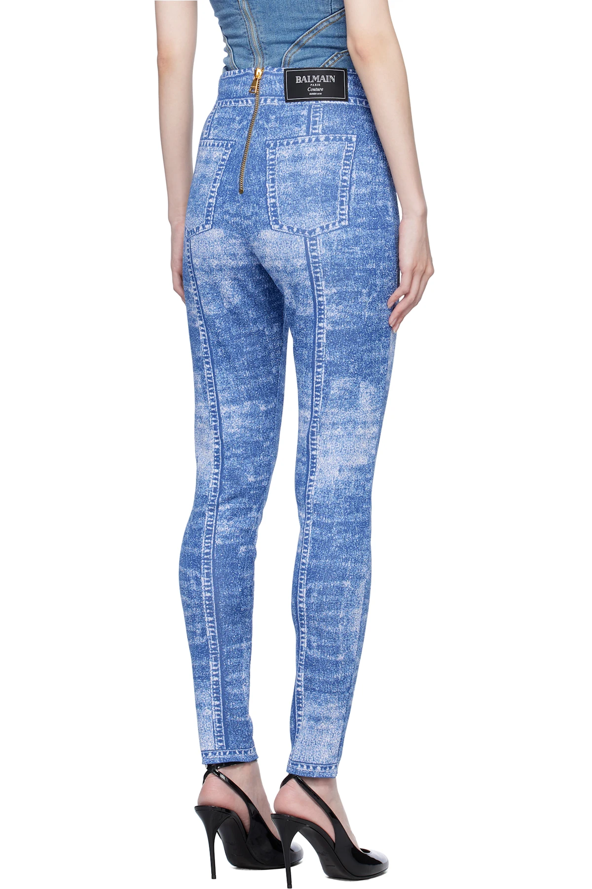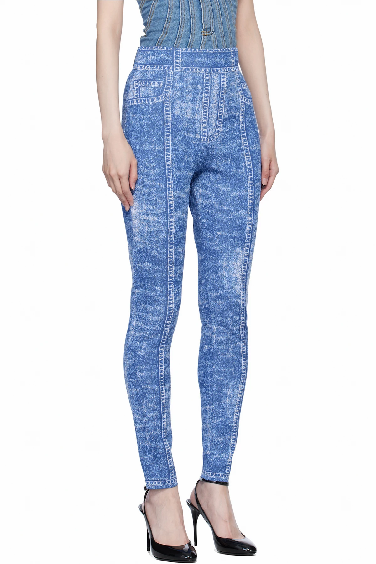 Knit viscose-blend leggings. Trompe l'œil denim graphic printed throughout.