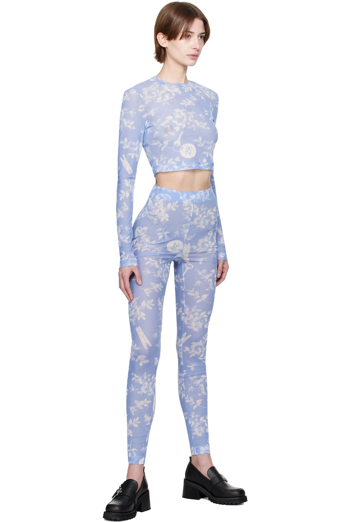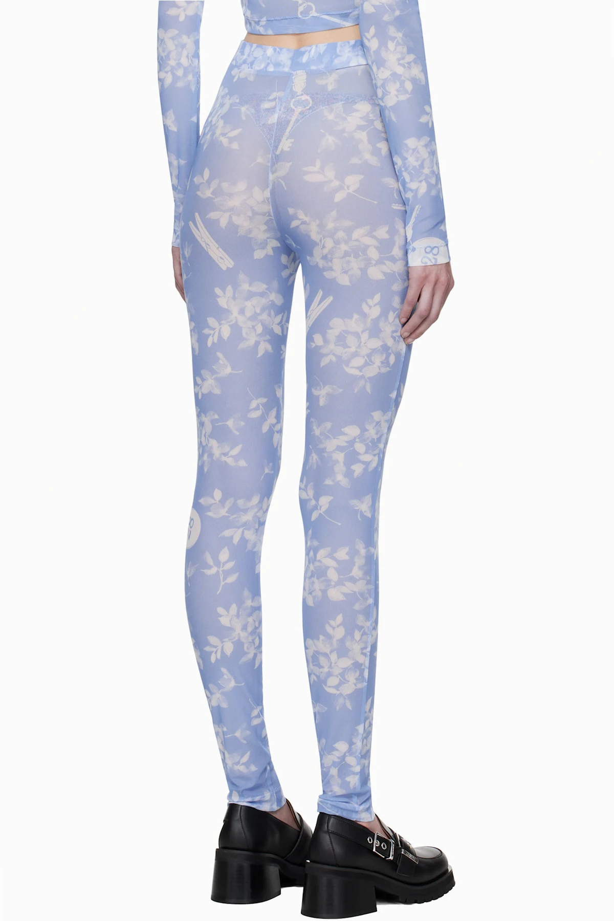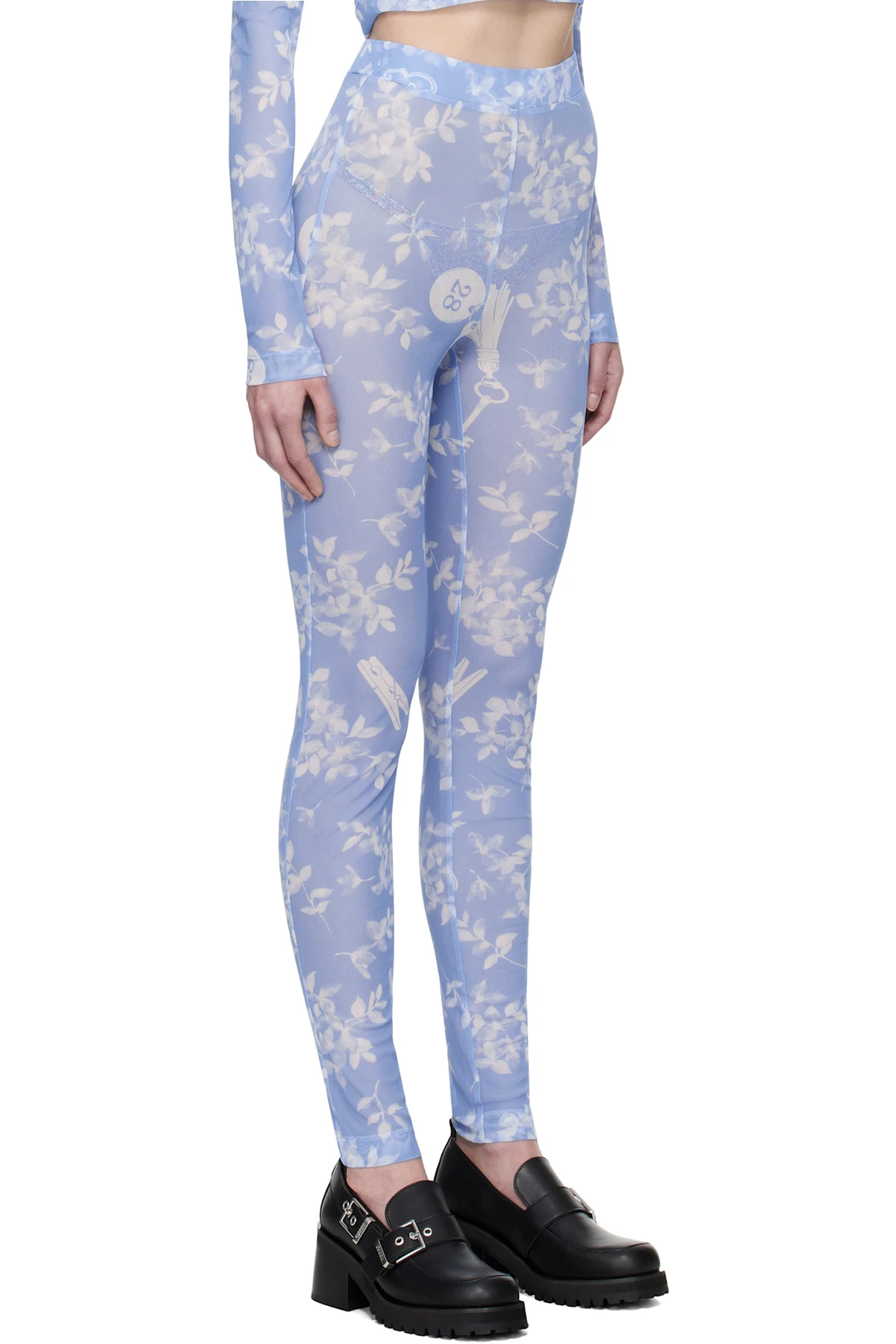 Moschino Jeans Blue Floral Print Mesh Leggings