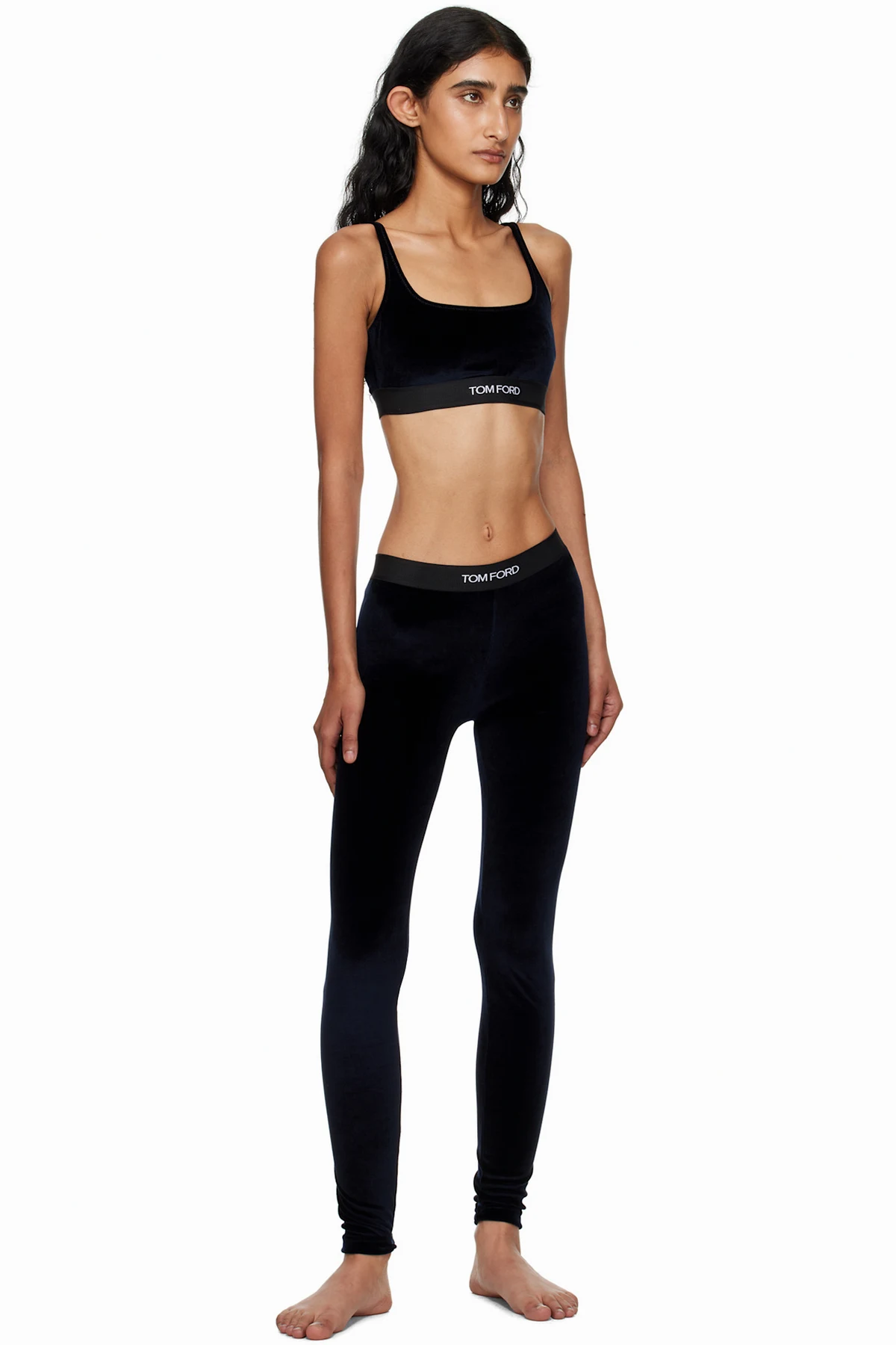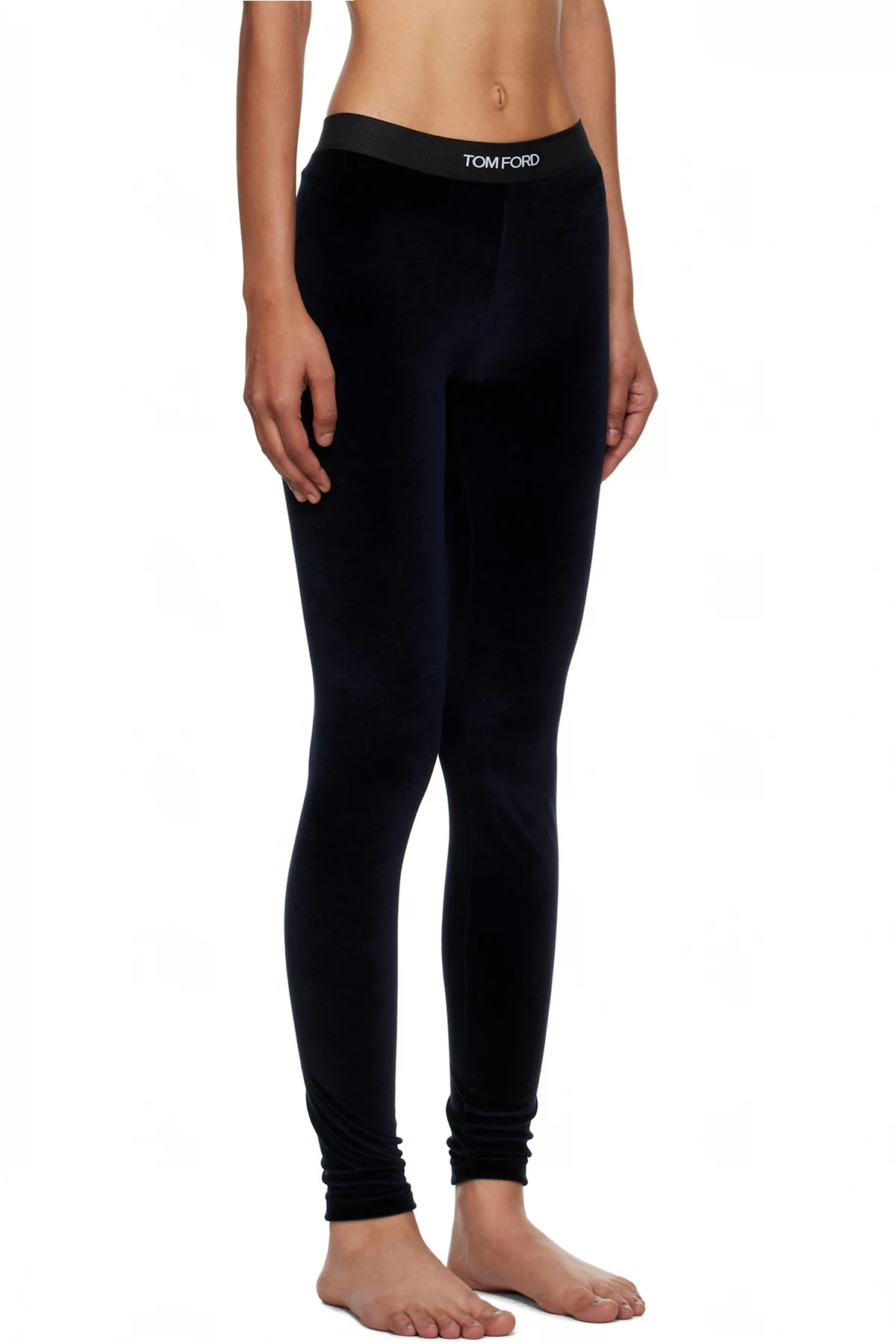 Tom Ford Navy Lustrous Velour Signature Leggings