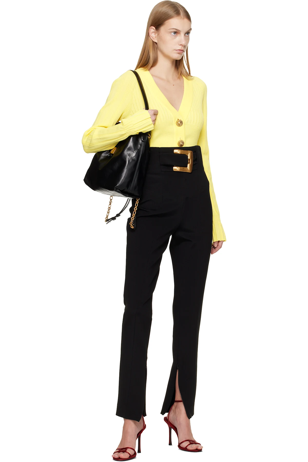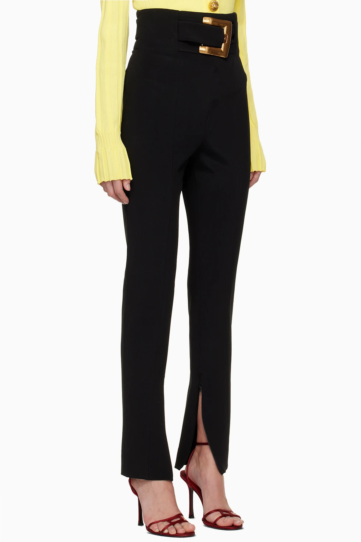 Balmain Black Stretch Belt Trousers