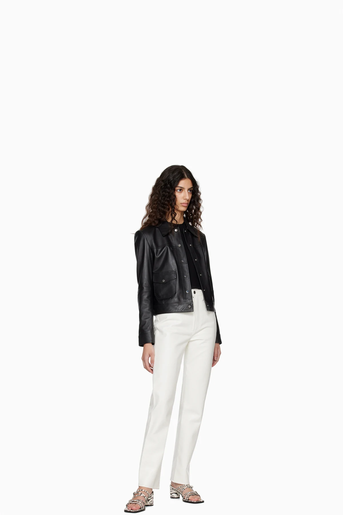 Straight-leg coated recycled leather pants.