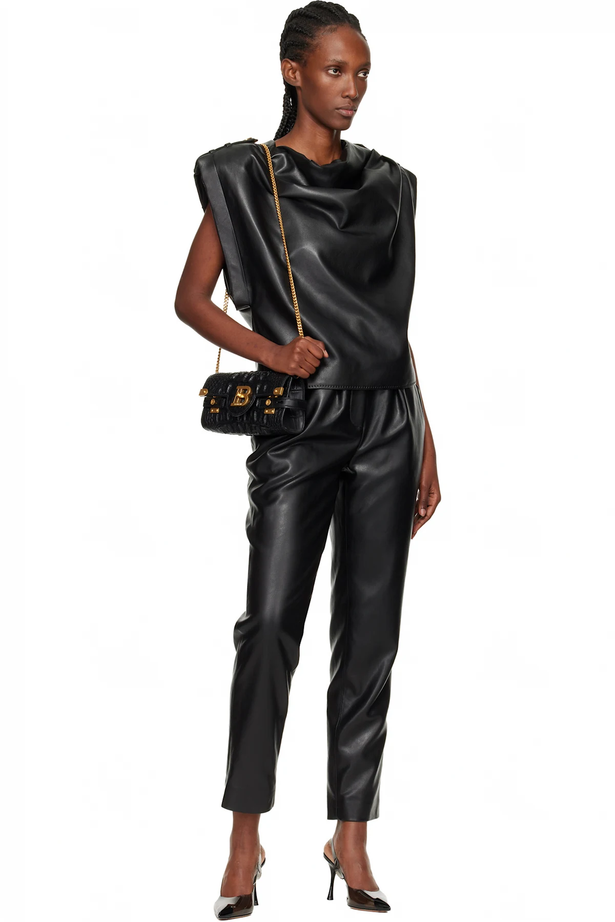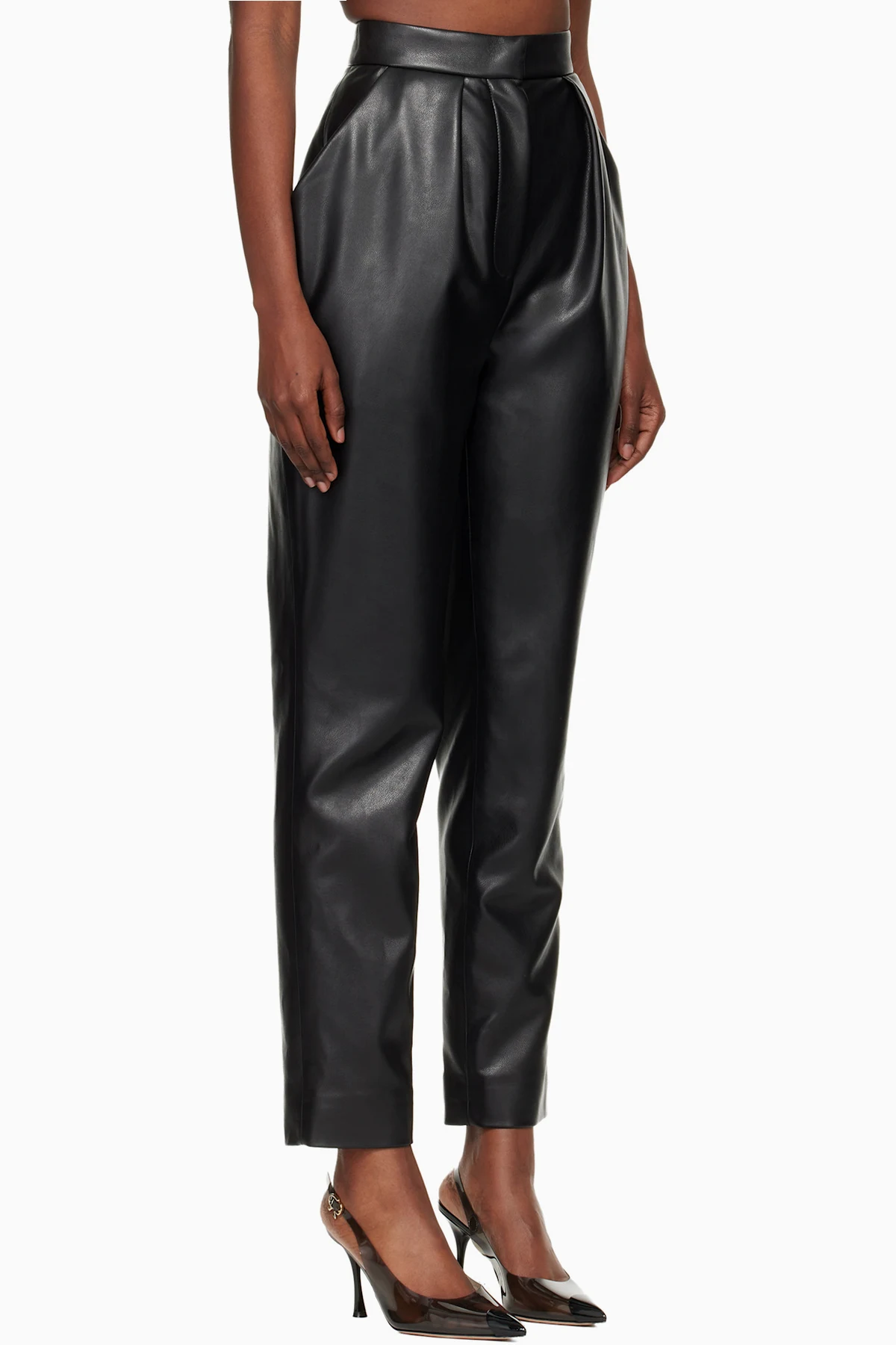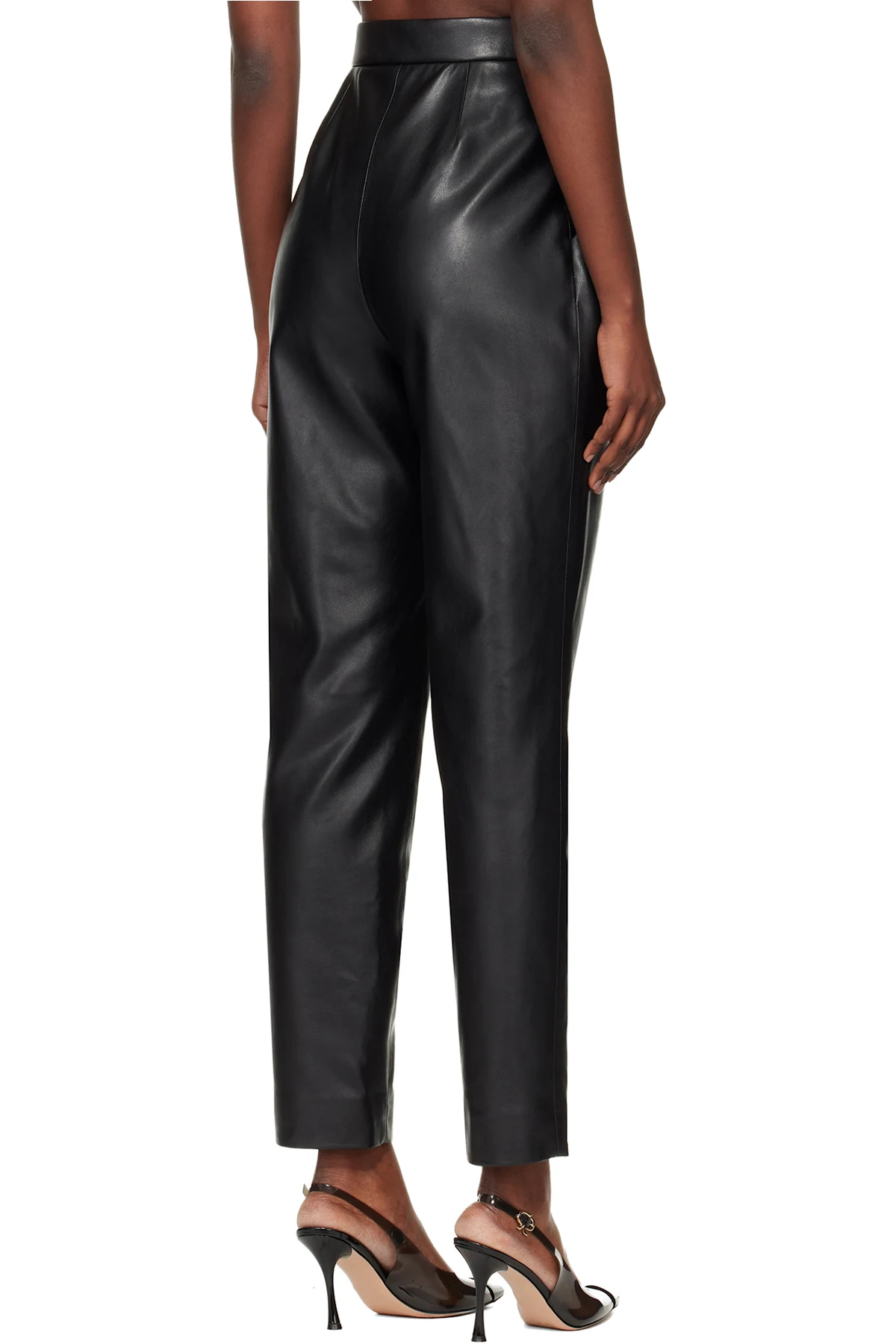 Tapered faux-leather trousers.