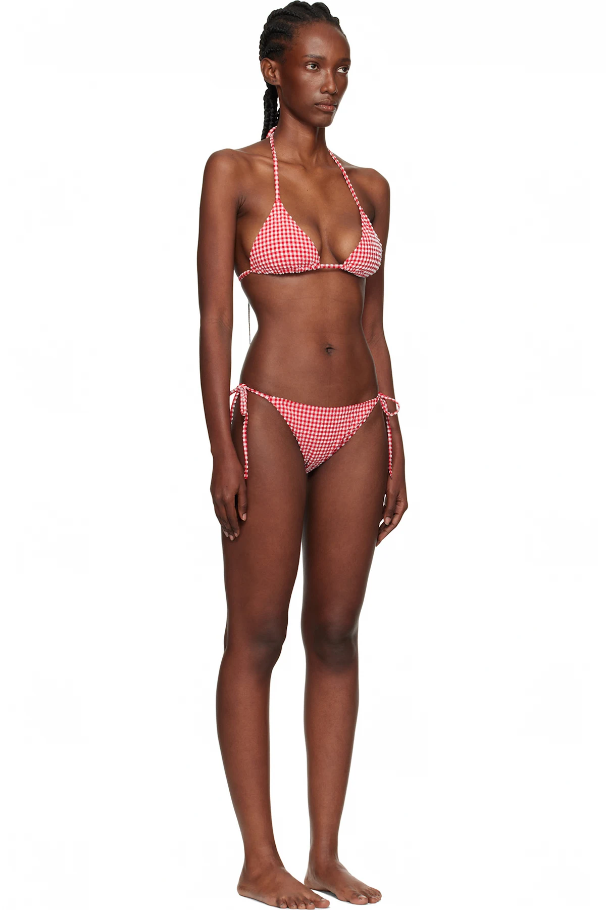 Hunza G Red & White Gingham Seersucker Sabrina Bikini
