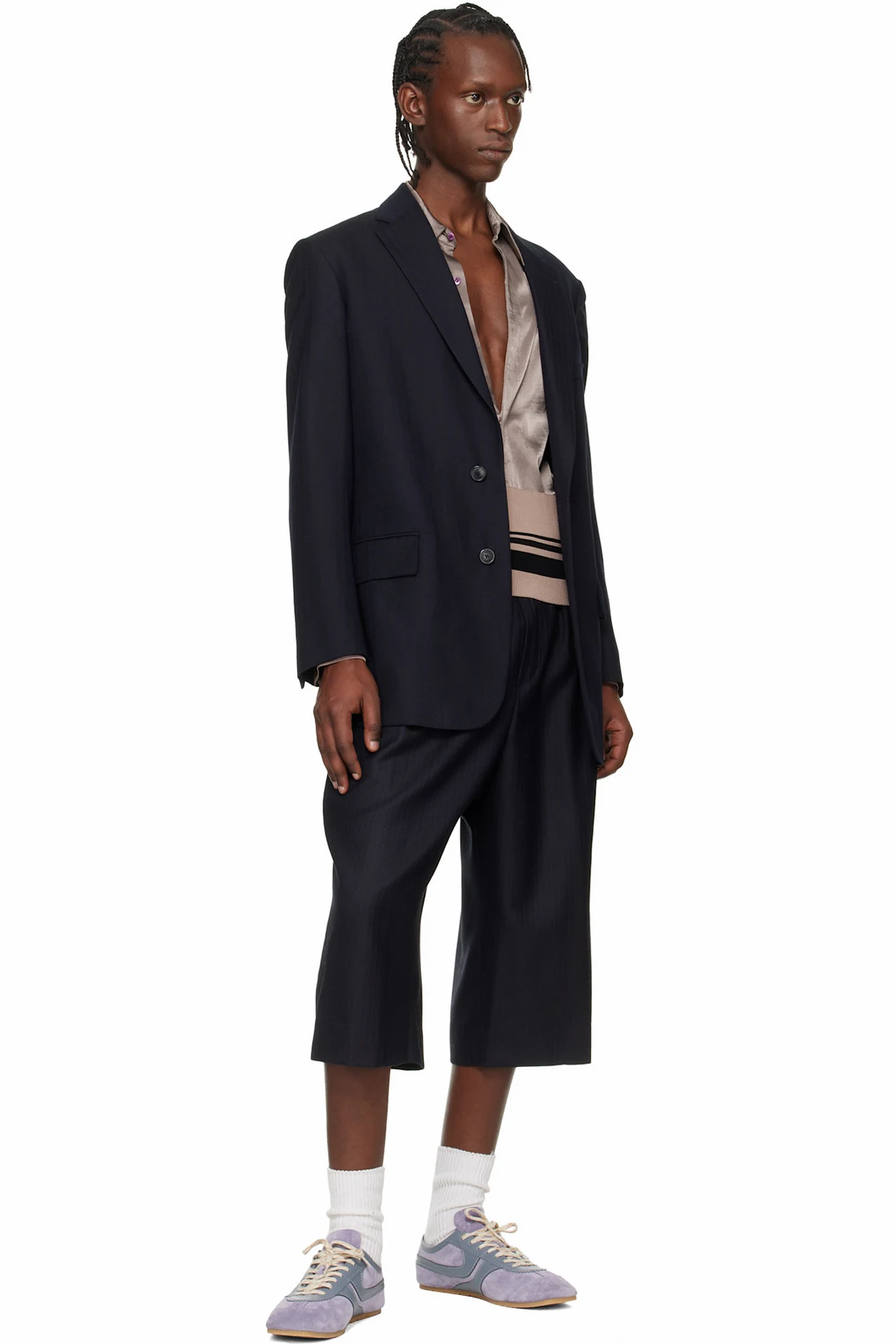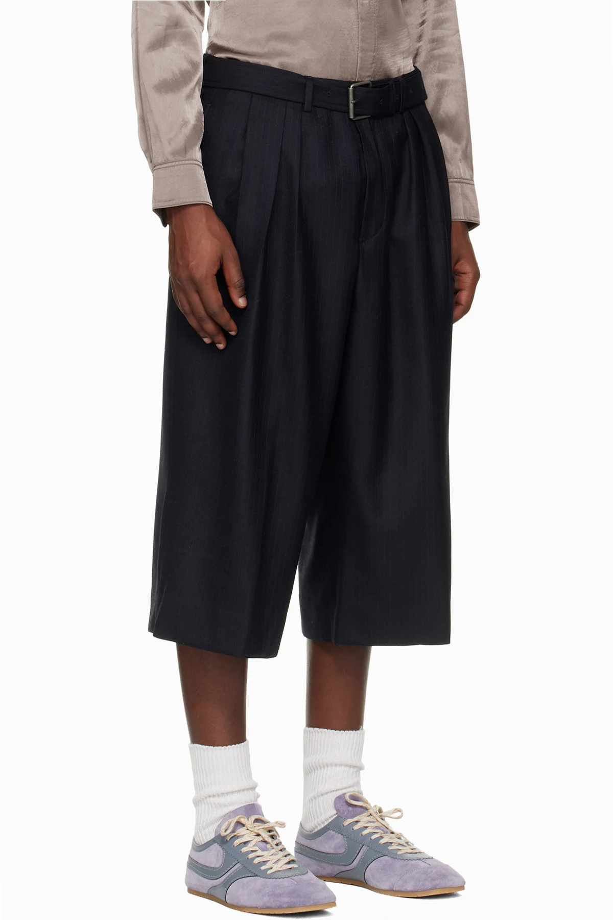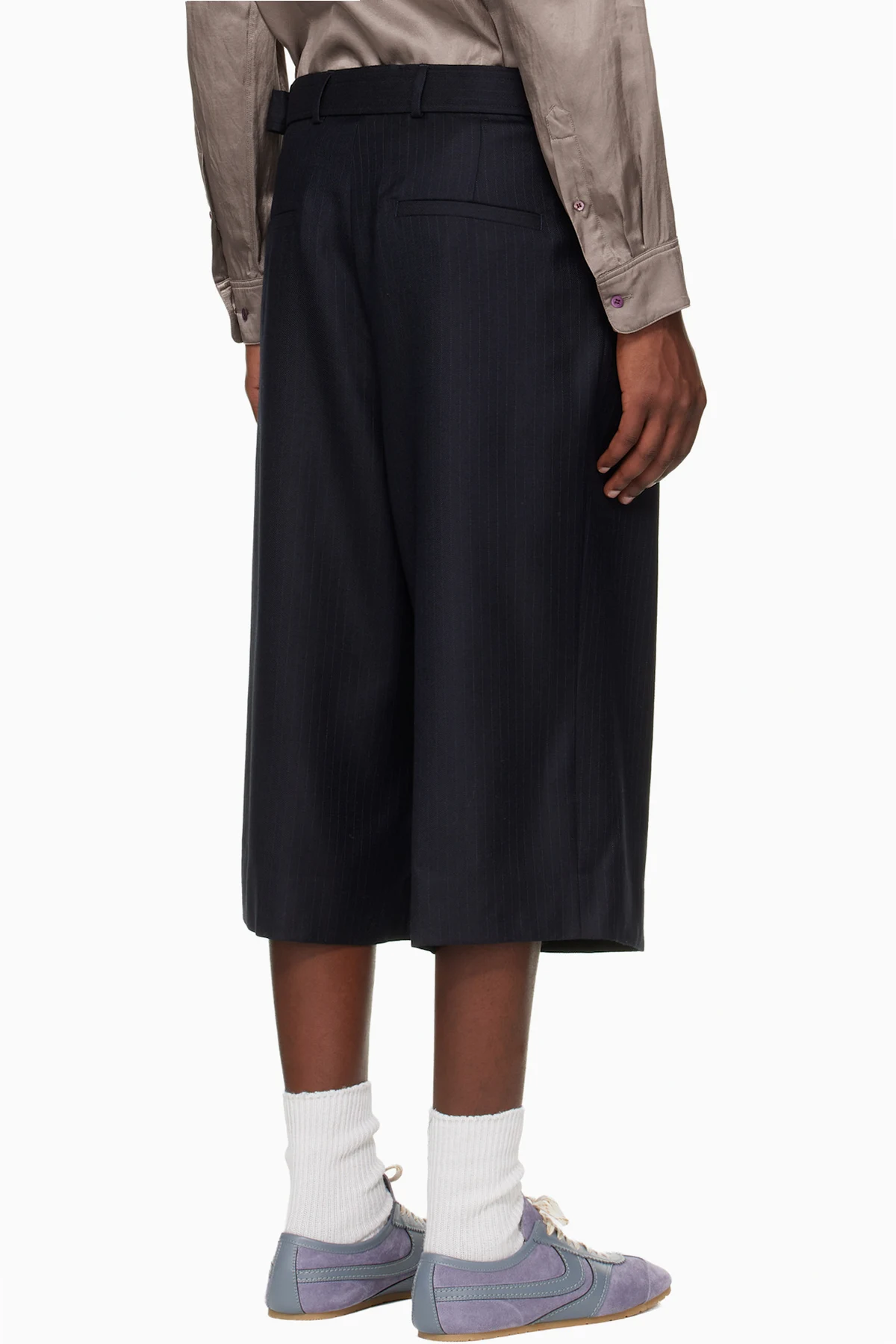 Dries Van Noten Navy Belted Light Wool Shorts