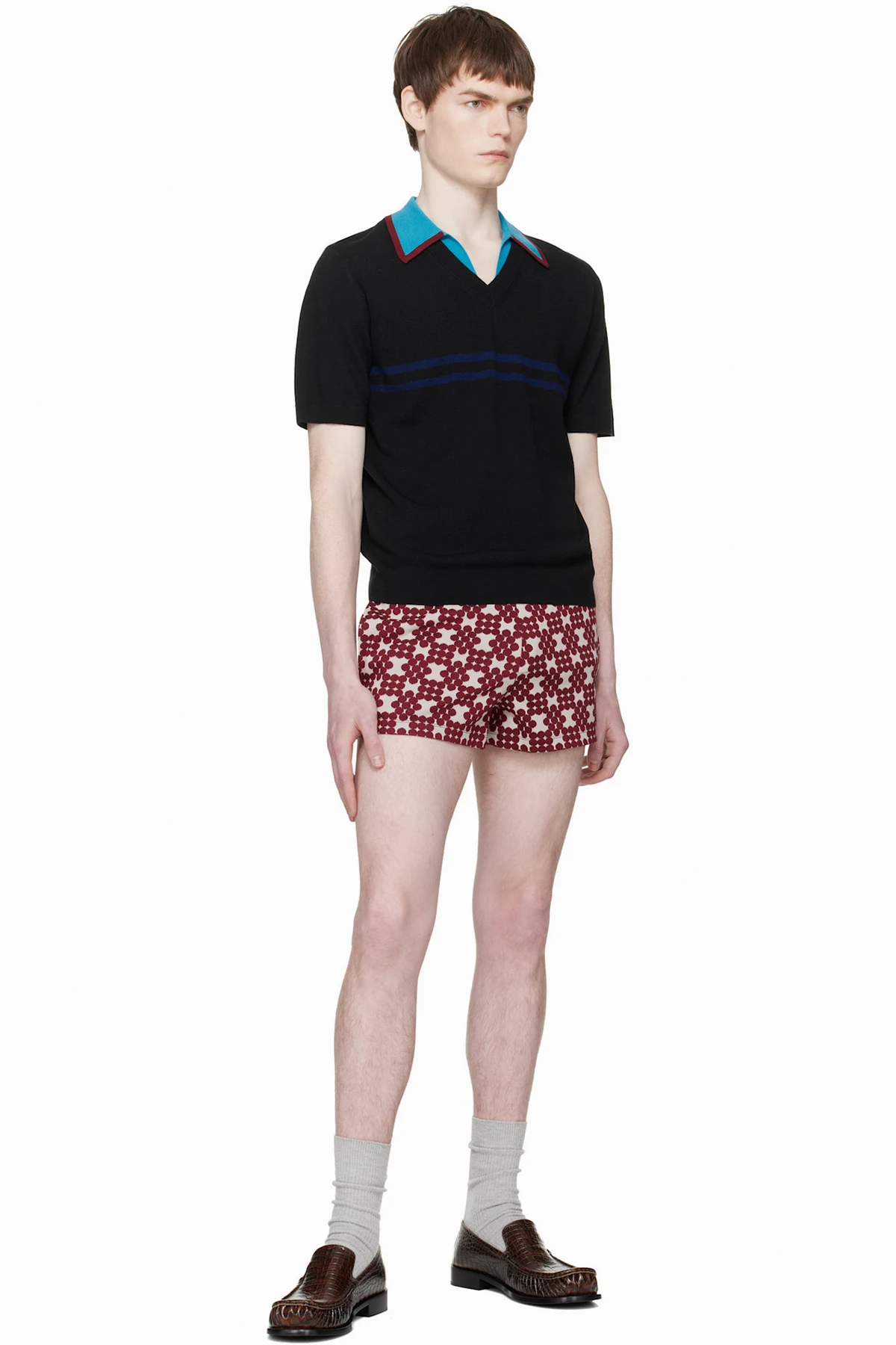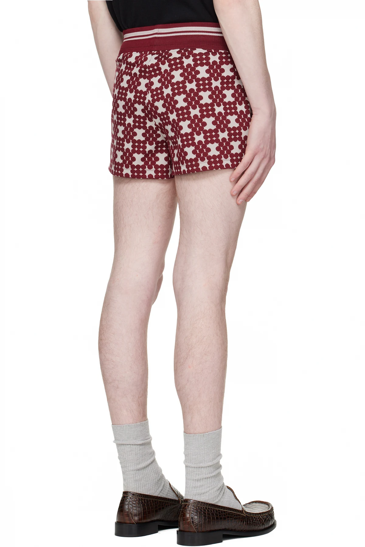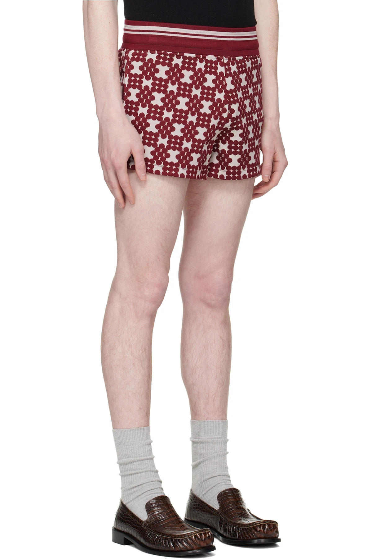 Dries Van Noten Burgundy Ribbed Jacquard Shorts