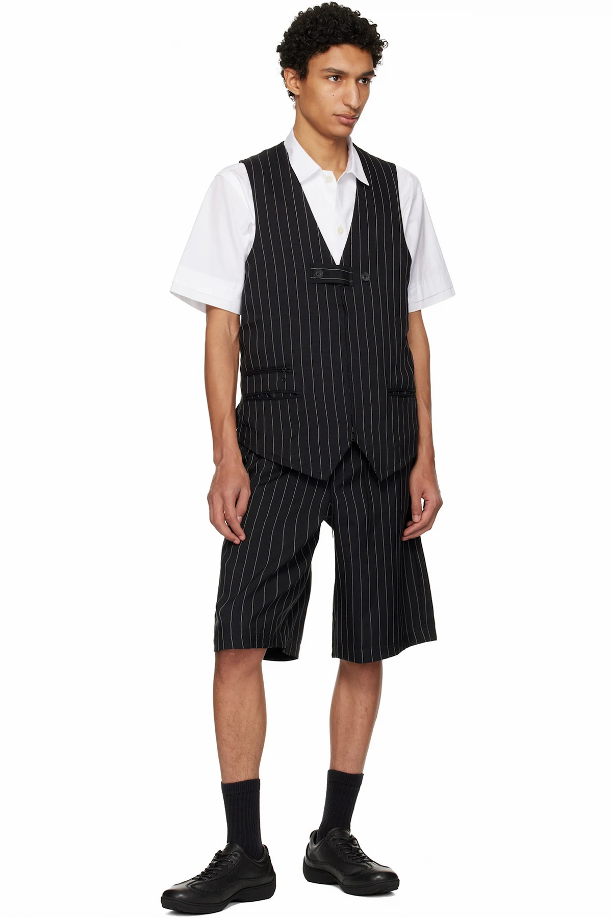 Y-3 Black Pinstripe Sport Uniform Shorts