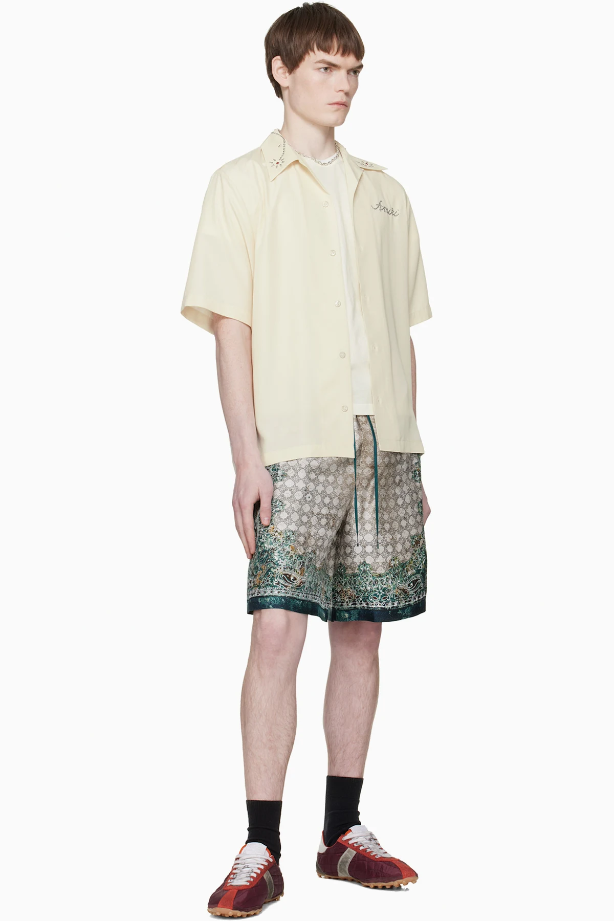 Amiri Beige & Green Bandana Shorts