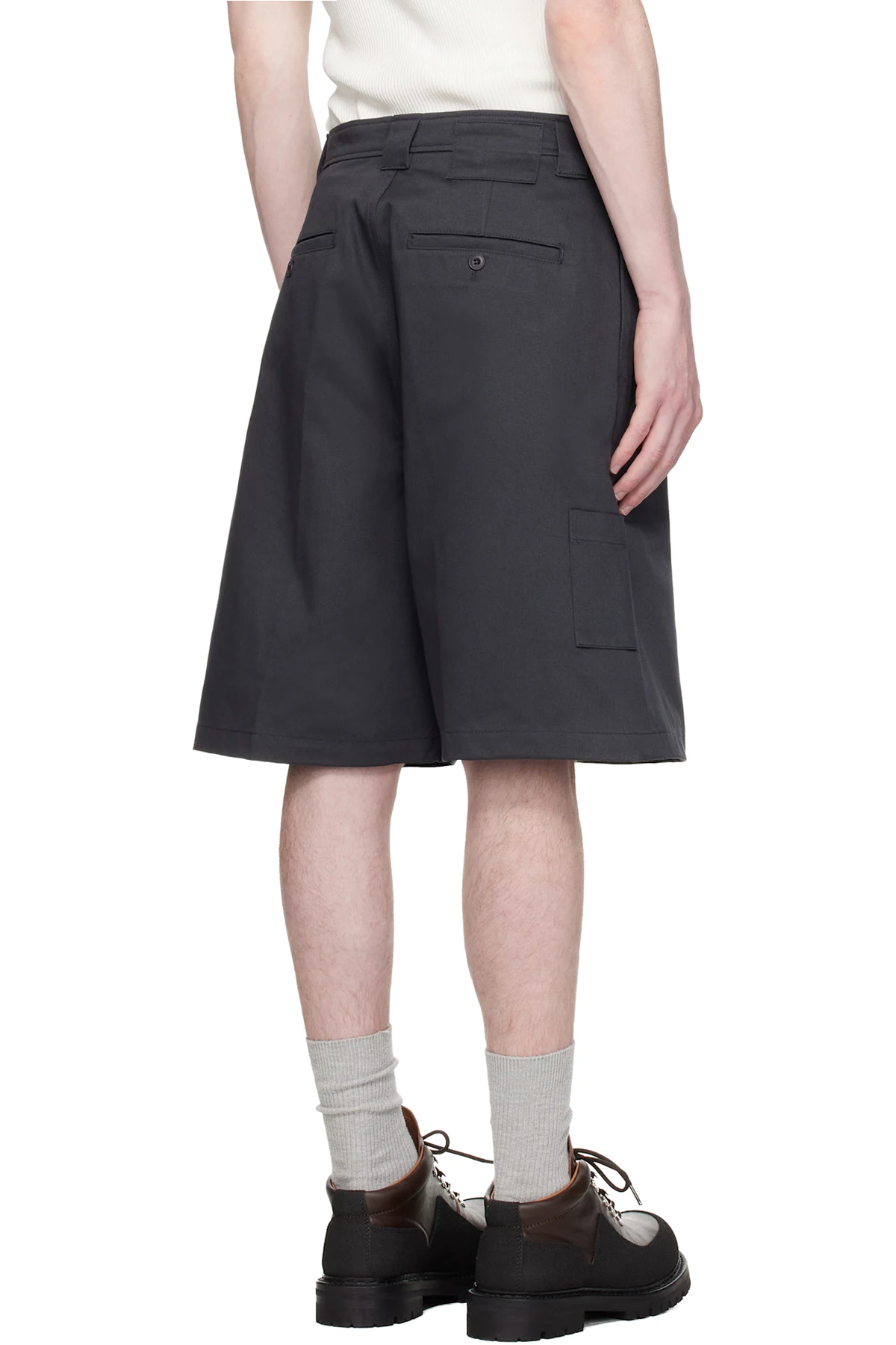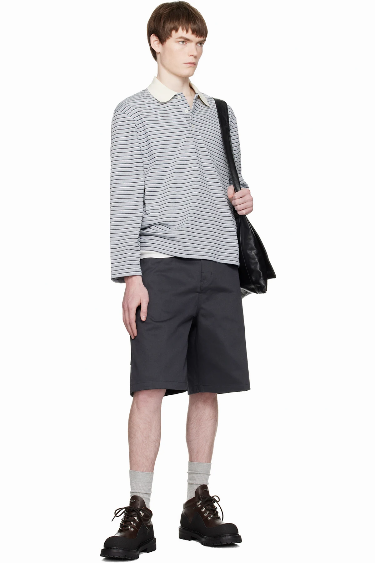 COOR Navy Cotton Blend Stitch Pointed Bermuda Shorts