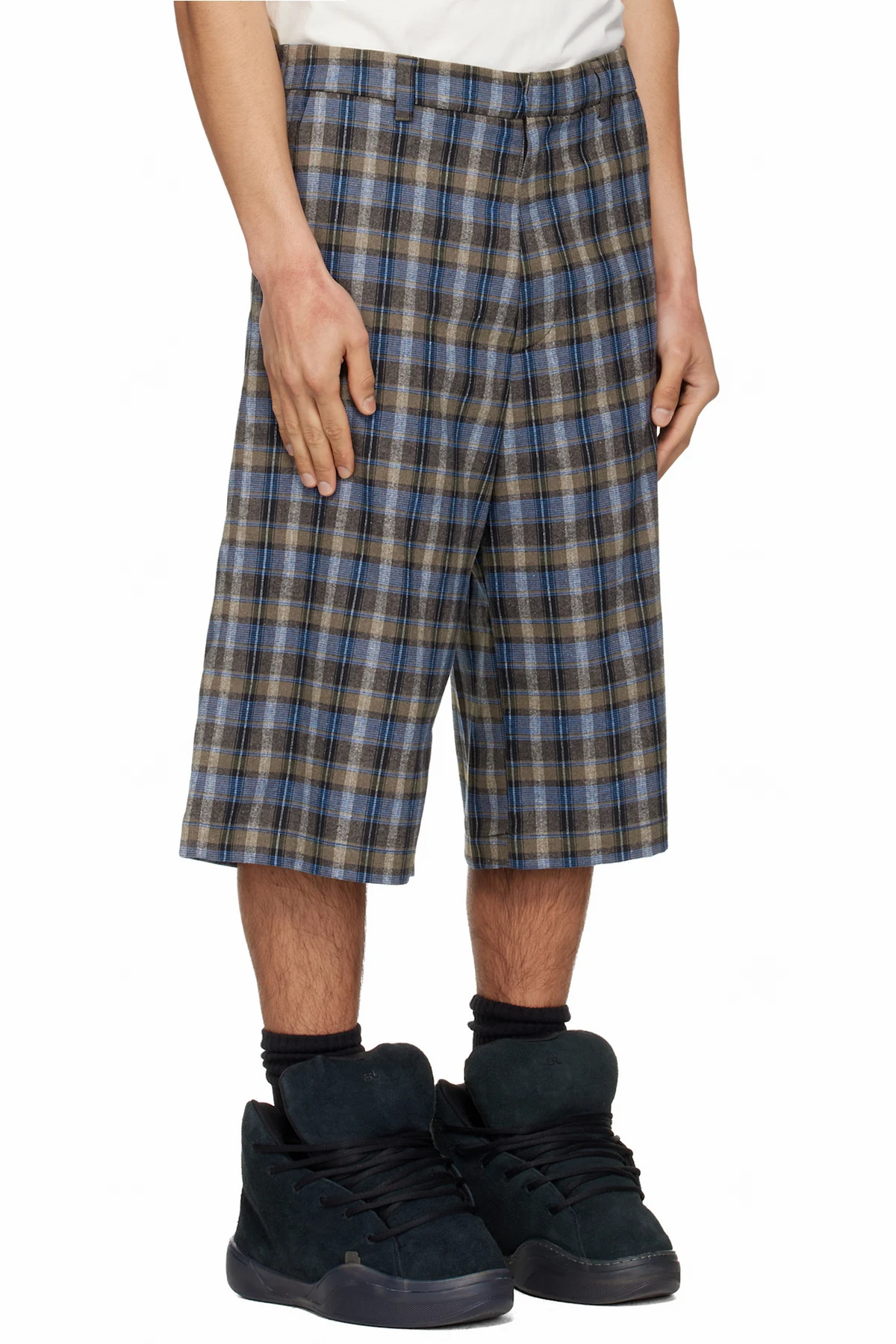ERL Gray & Blue Check Shorts