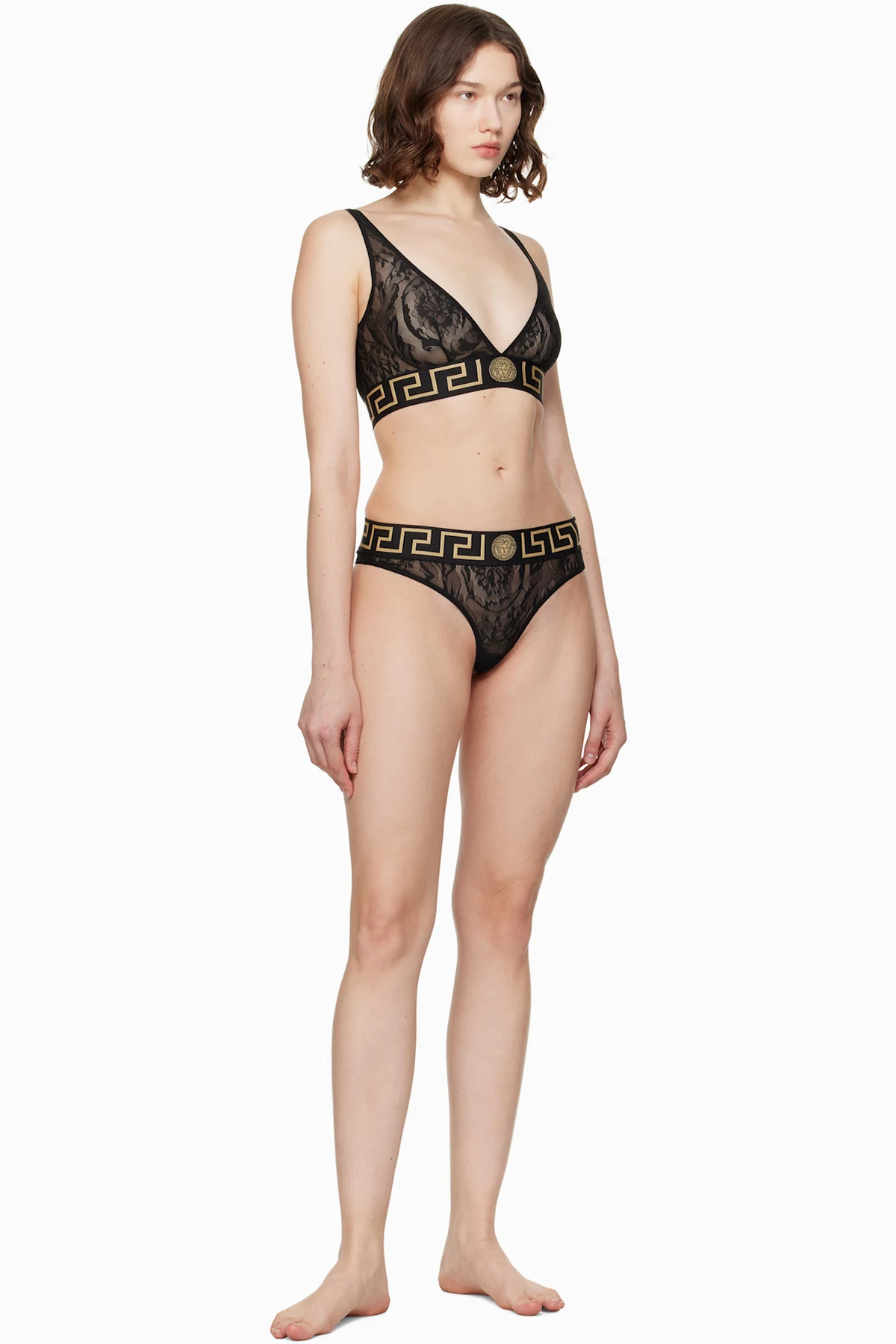 Versace Black Greca Border Lace Briefs