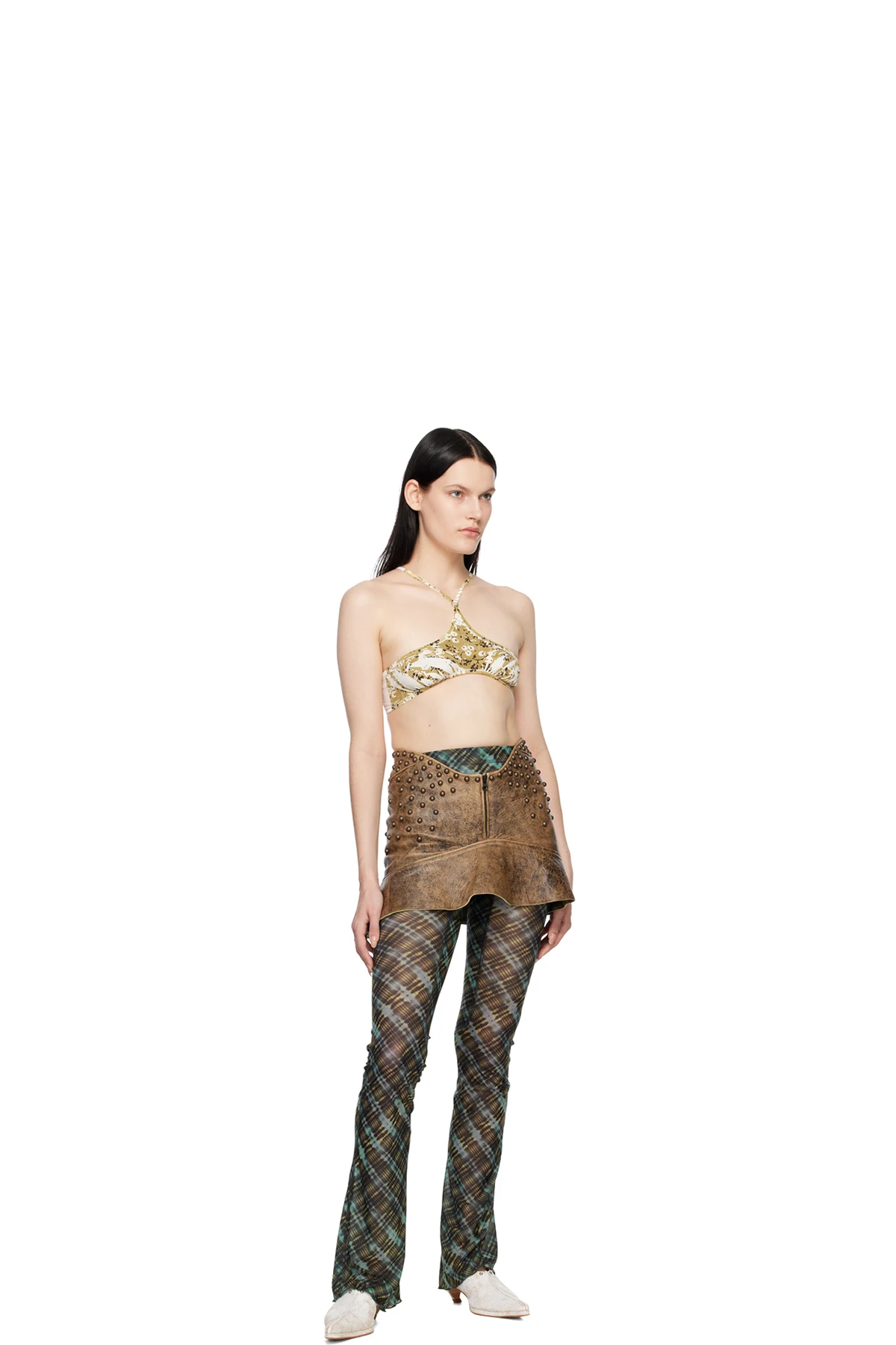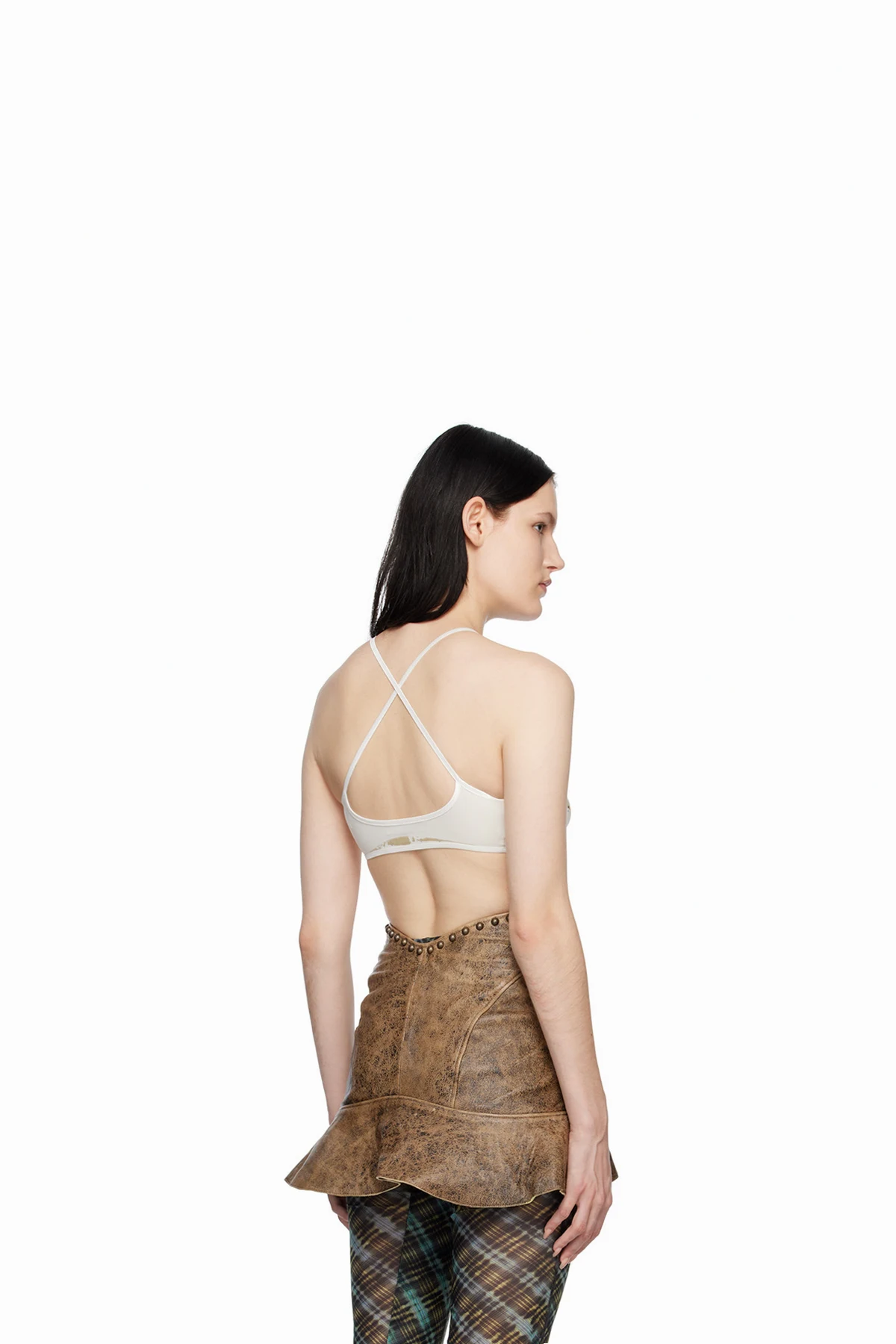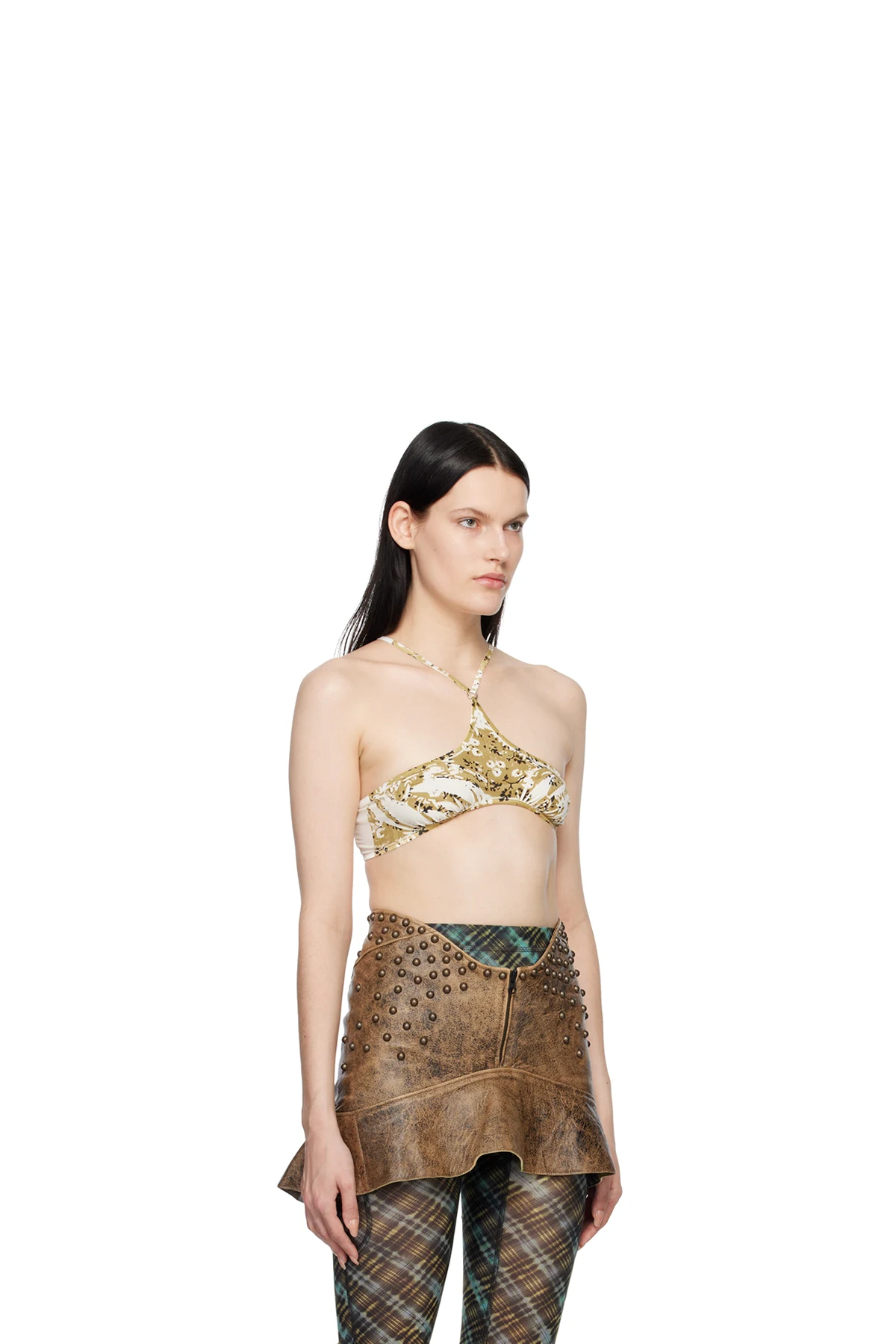 Handcrafted stretch nylon jersey bra. Floral pattern screen printed throughout.