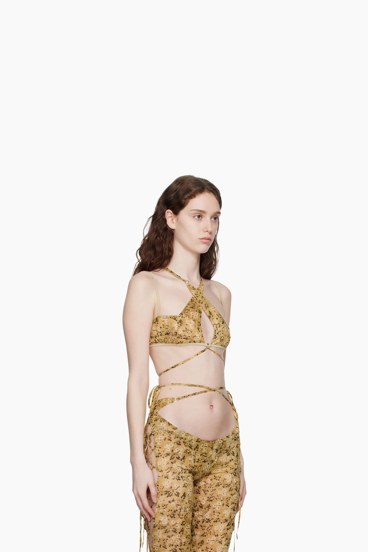 Semi-sheer stretch silk chiffon camisole. Floral pattern printed throughout.