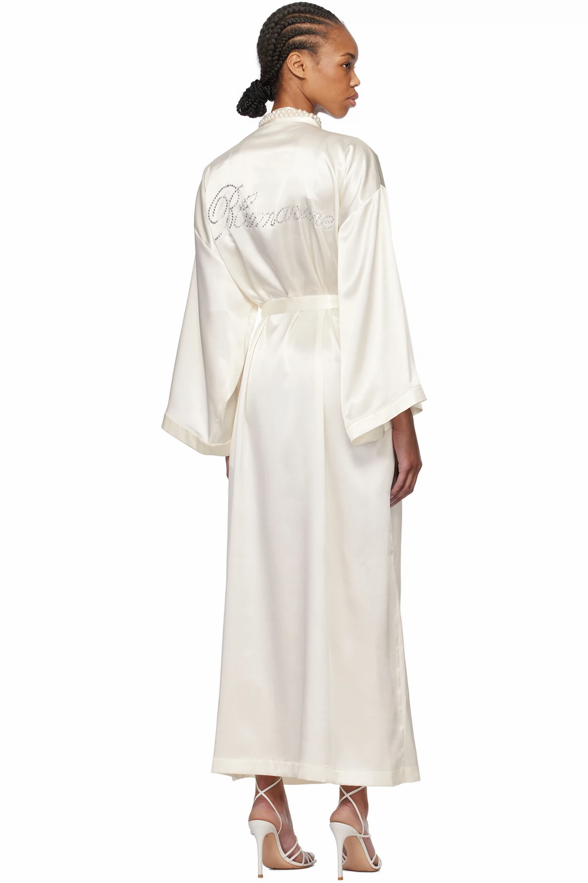 Blumarine Off-White Rhinestone Logo Robe