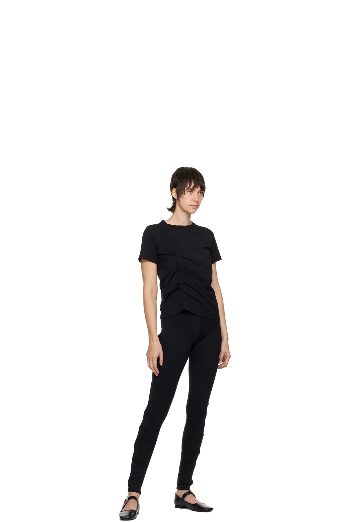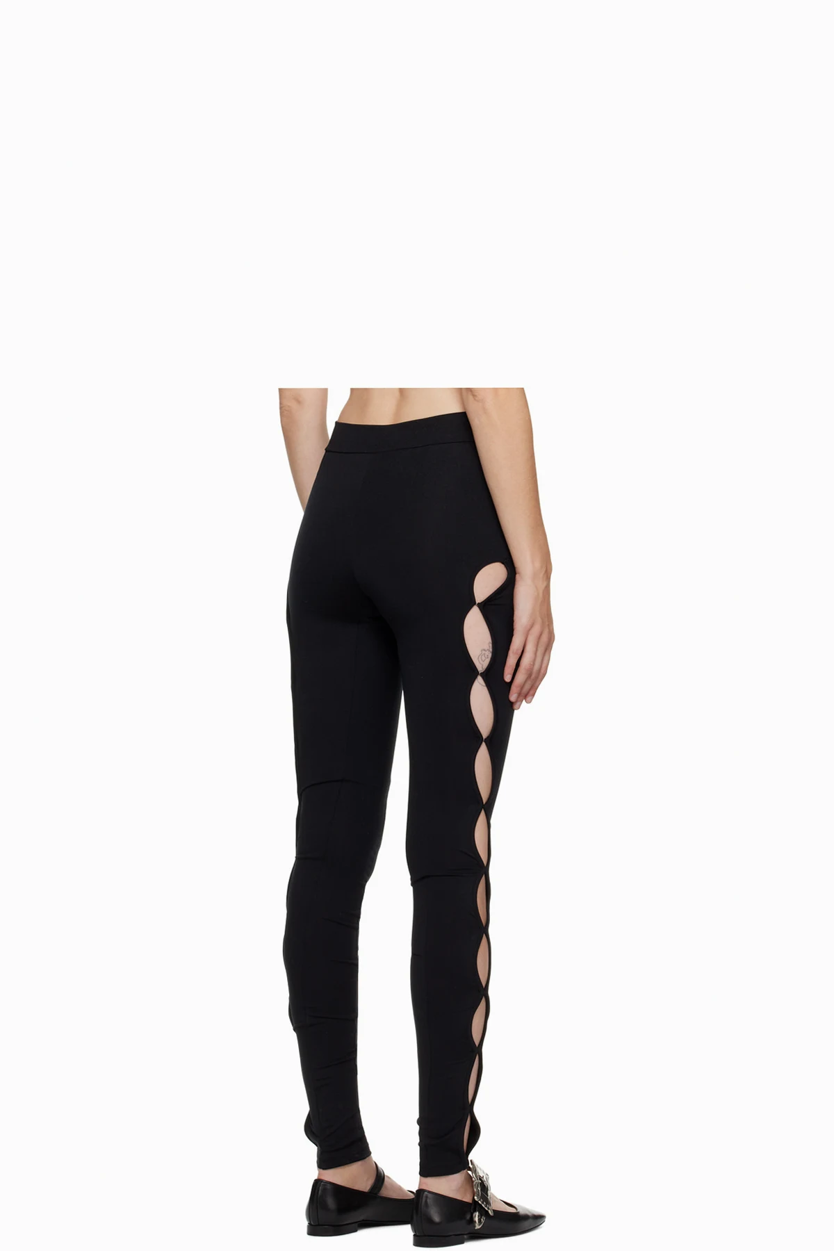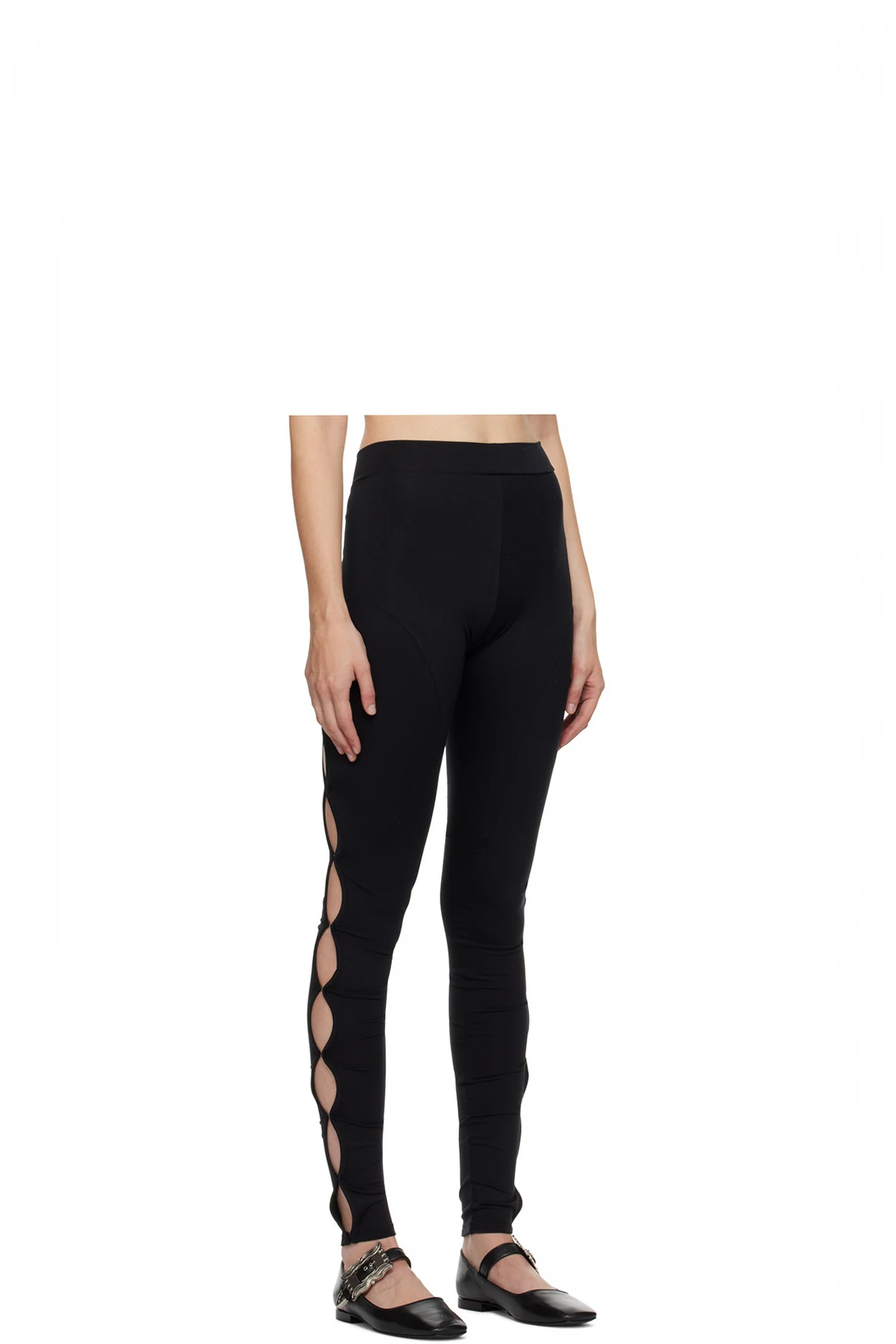 Stretch polyester jersey leggings. Vented side seams with hook-eye fastenings.
