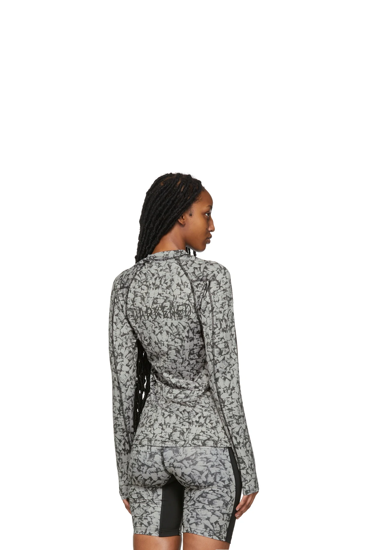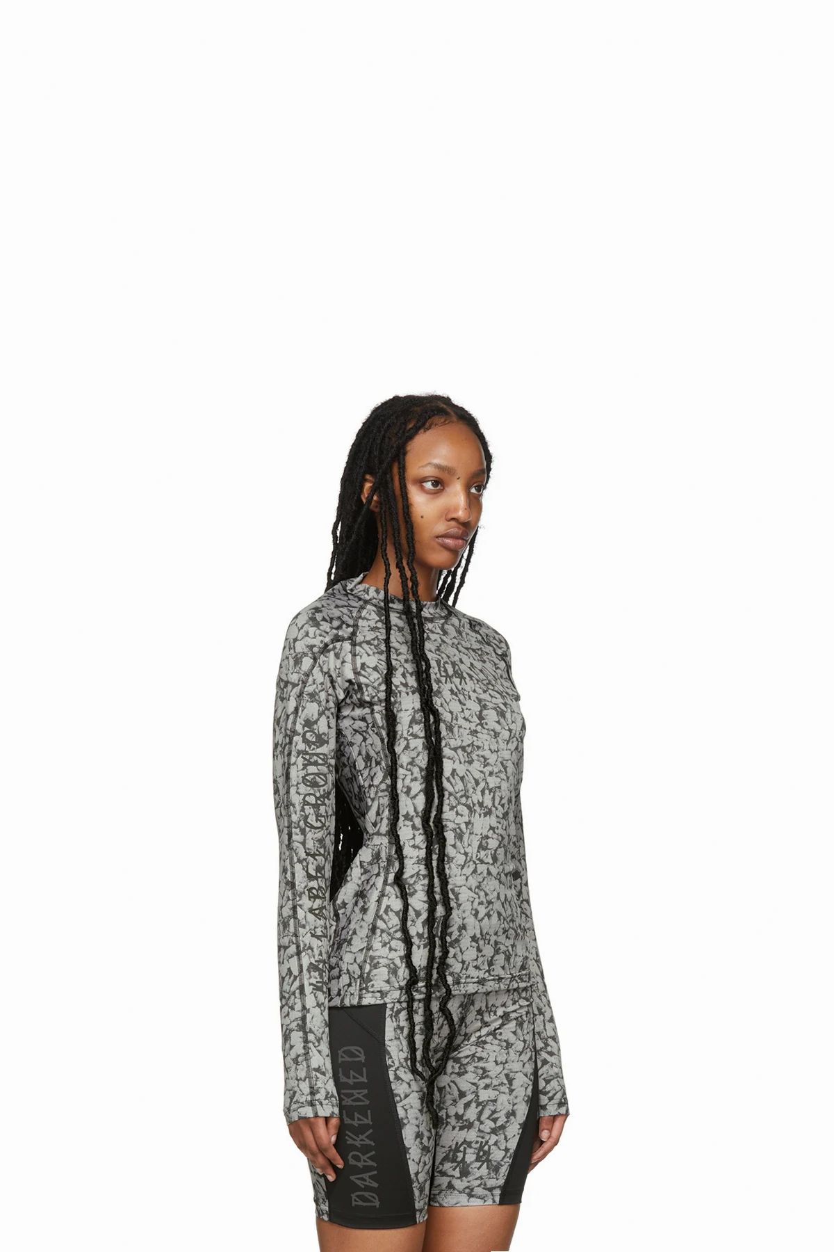 Long sleeve stretch technical jersey sport top featuring graphic pattern printed in black and grey throughout.