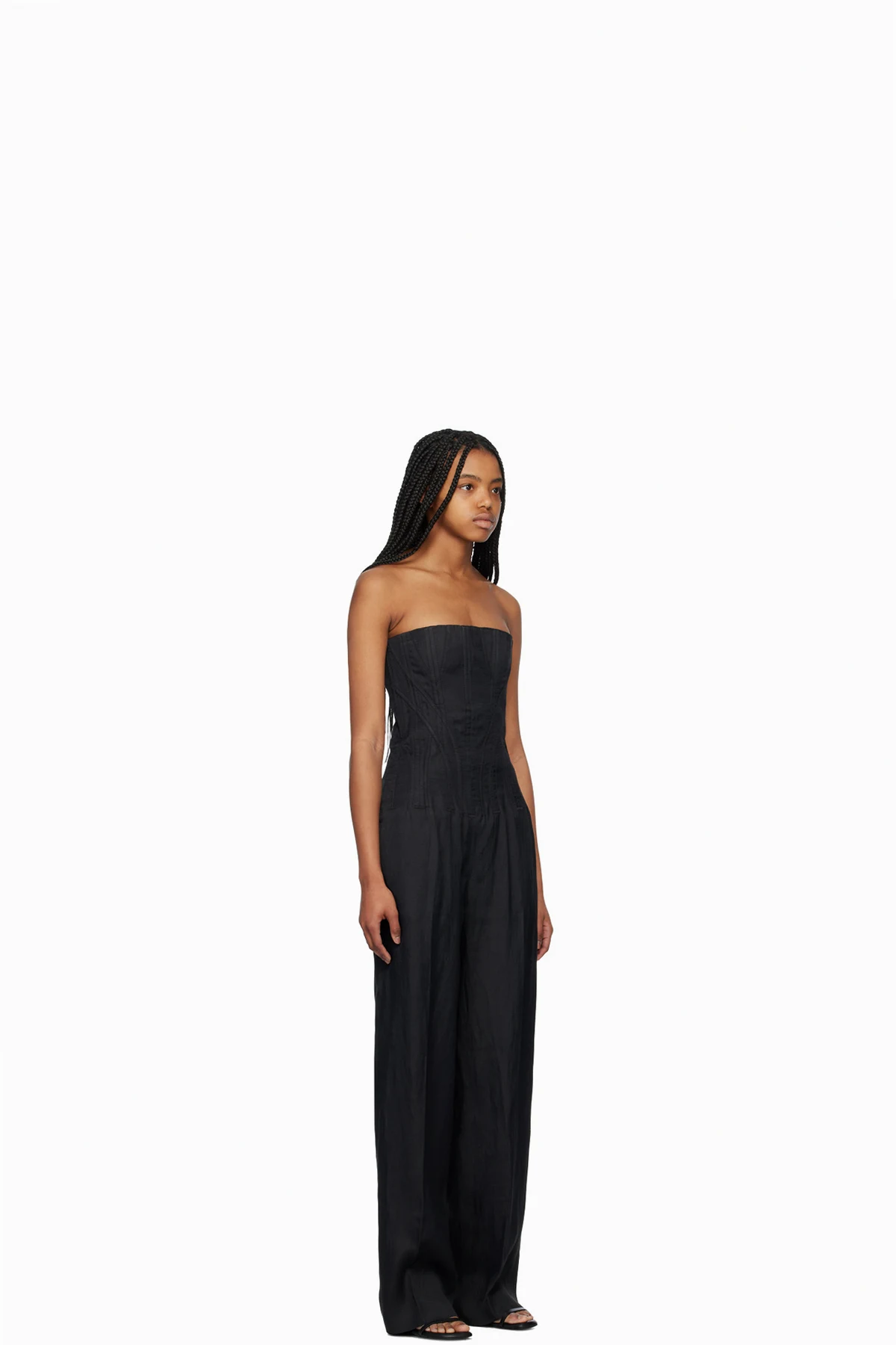 Wide-leg FSC-certified viscose and linen-blend twill jumpsuit. Boning throughout.