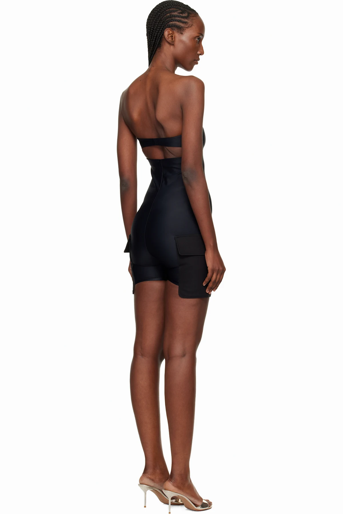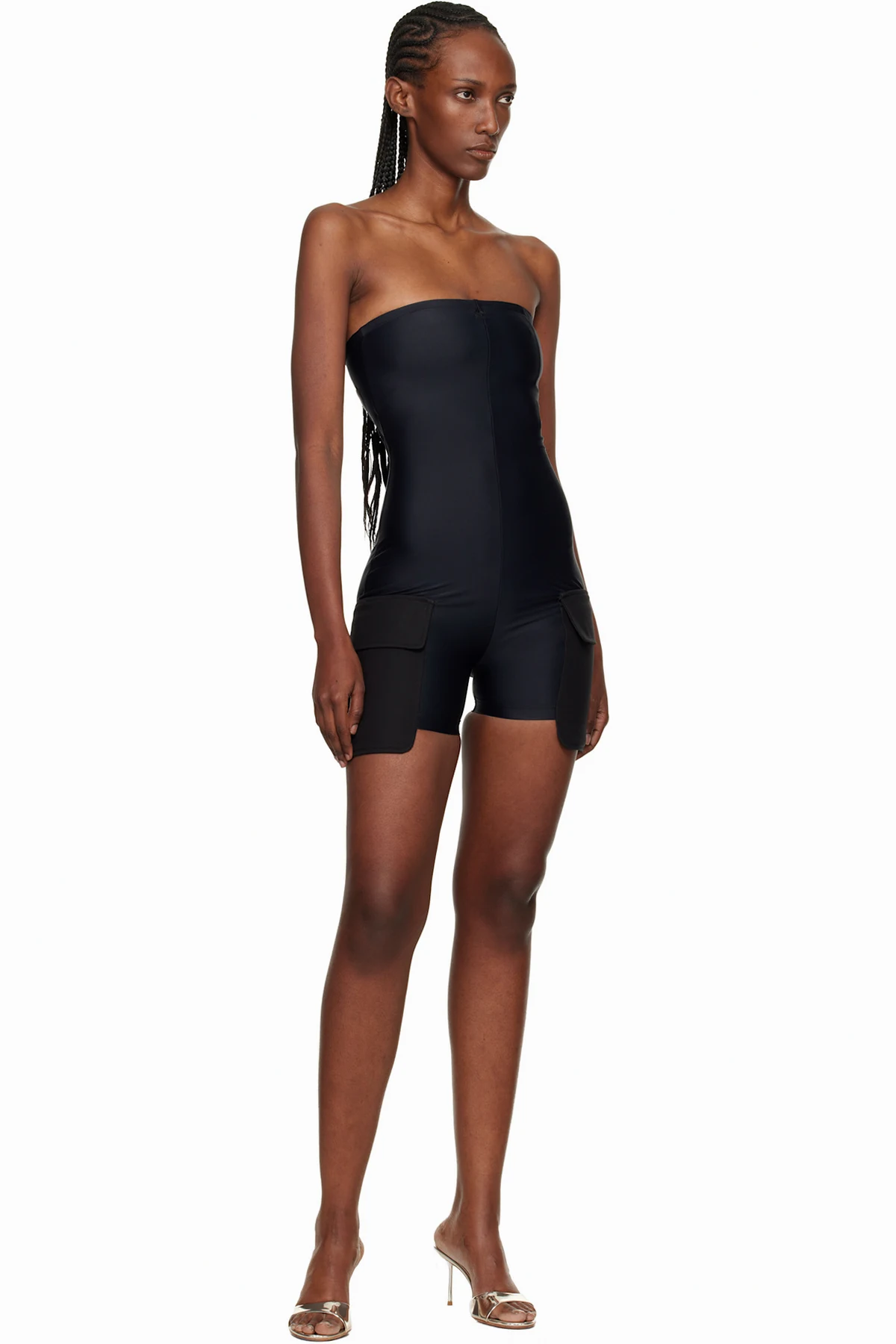 Courrèges Black 2-Pocket Jersey Bustier Overall Jumpsuit
