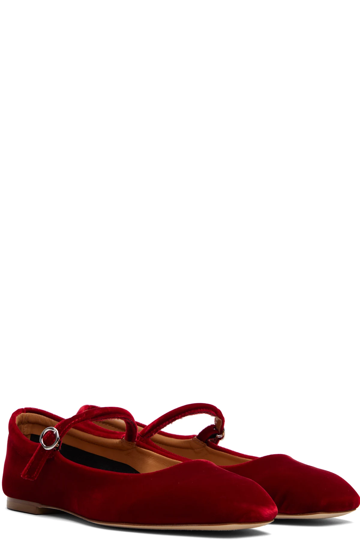 Velvet Mary Jane-style ballerina flats.