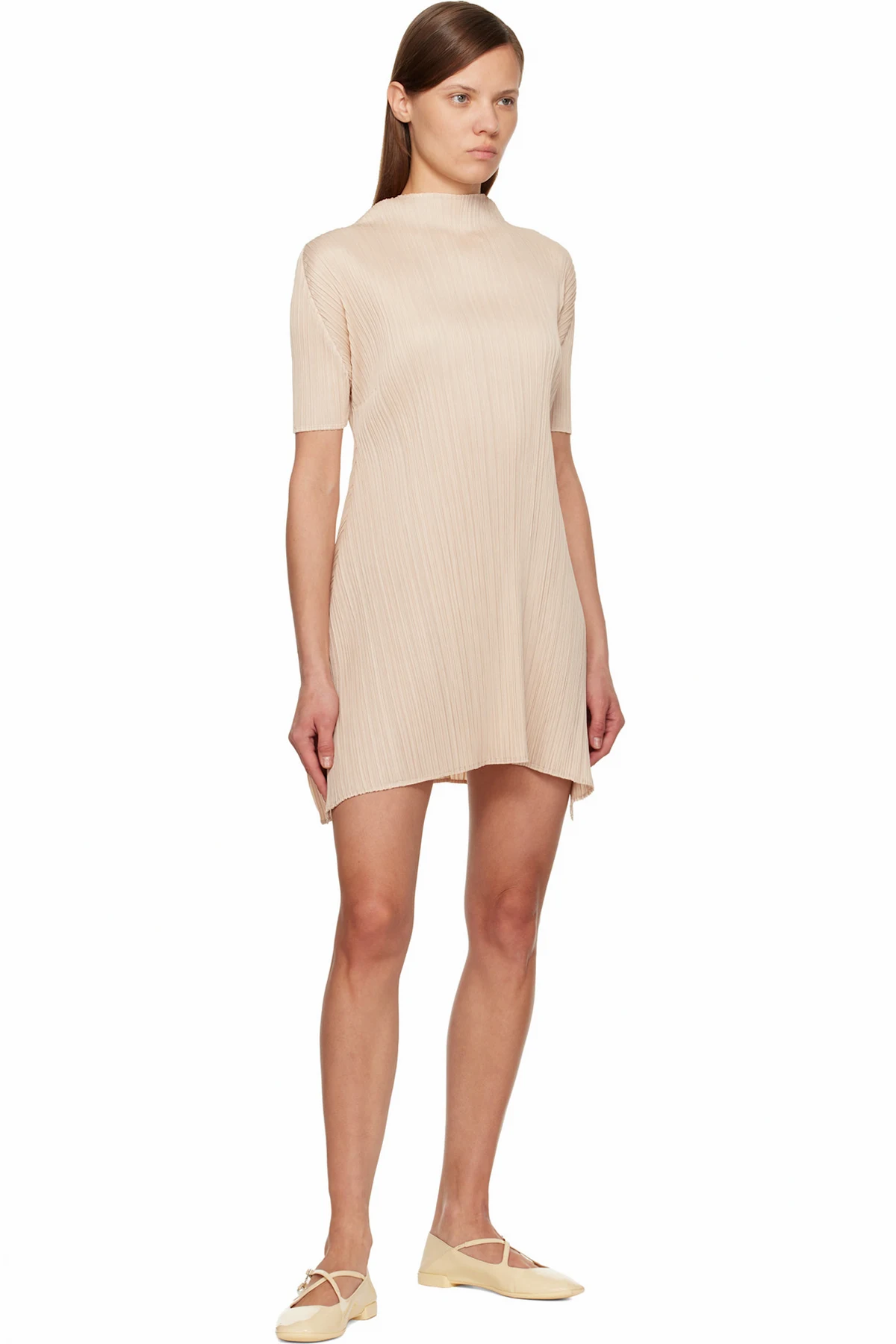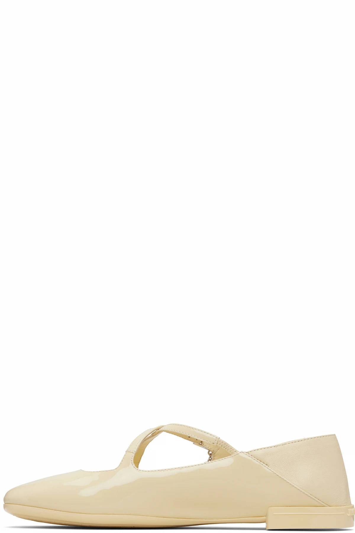 Grained and patent calfskin ballerina flats.